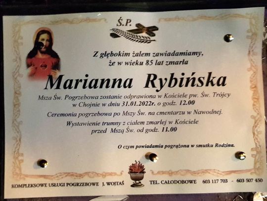 Msza św. pogrzebowa odprawiona zostanie 31 stycznia 2022 r. o godz. 12.00 w kościele pw. Świętej Trójcy w Chojnie.