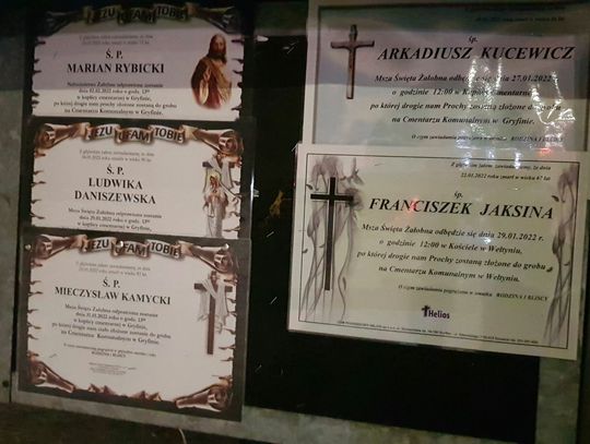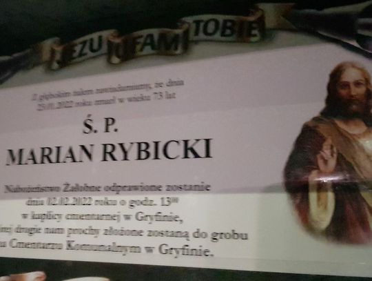 Nabożeństwo żałobne odprawione zostanie 2 lutego 2022 r. o godz. 13.00 w kaplicy cmentarnej w Gryfinie.