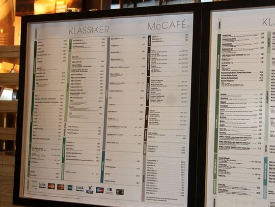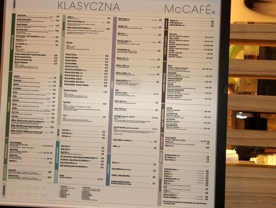W godzinach porannych w restauracji dostępne są produkty z oferty śniadaniowej bazujące na jajkach, produktach zbożowych i bekonie. W pozostałych godzinach obowiązuje dobrze znana oferta klasyczna. Goście mogą raczyć się specjałami z kącika kawiarnianego McCafé, w ofercie którego znajdują się najwyższej jakości kawy oraz szeroki wybór deserów.