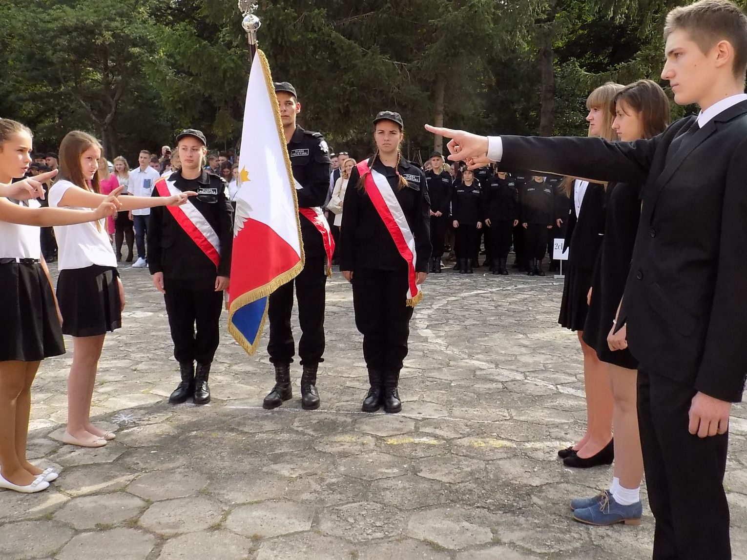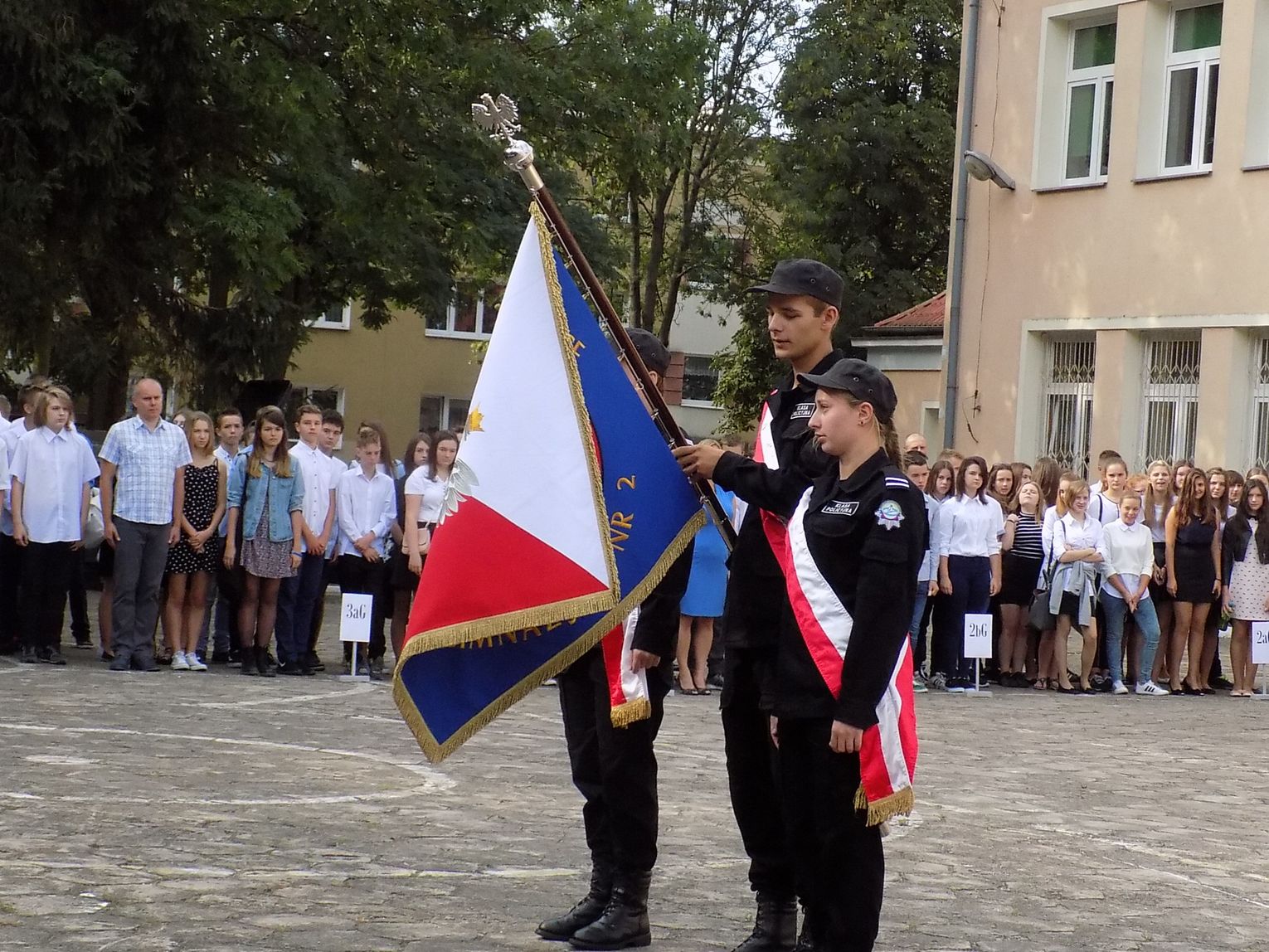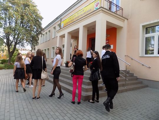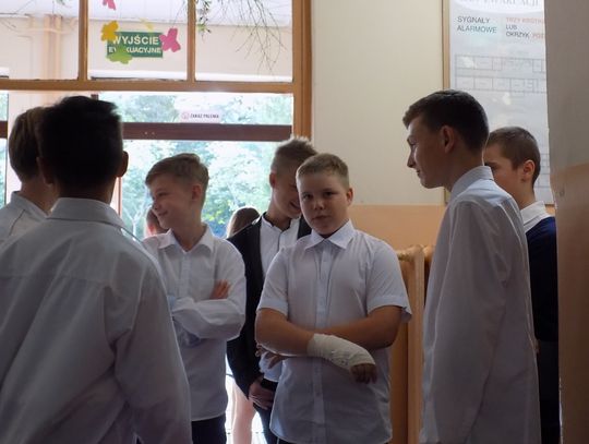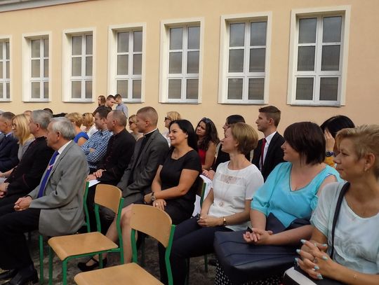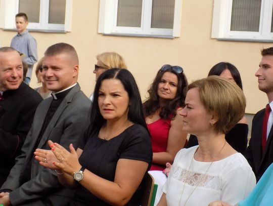 Uczniowie pierwszego roku, jak tradycja każe, złożyli przysięgę na sztandar szkoły. Przed wszystkimi pracowity rok. Dyrektor wspomniał o realizacji projektu edukacyjnego, o nadziei na nową halę sportową, która na pewno będzie miała ogromne znaczenie dla rozwoju szkolnego sportu.