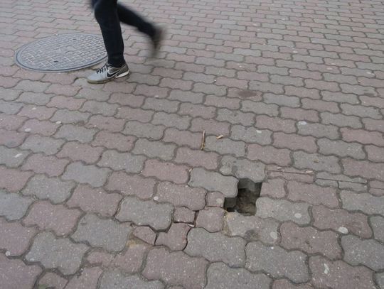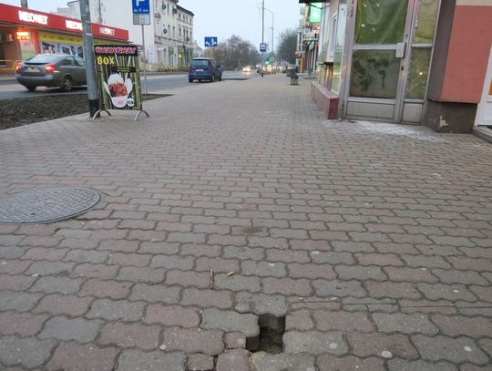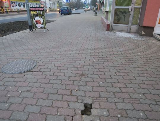Uwaga na dziurę w chodniku, żeby przed świętami nie mieć nogi w gipsie