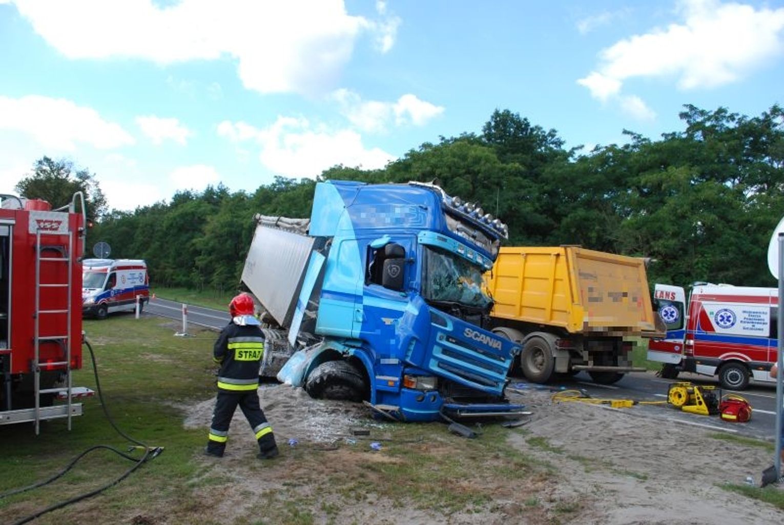 Jak już informowaliśmy, dwa samochody ciężarowe marki Scania oraz Daf zderzyły się dzisiaj, 24 sierpnia 2016 r. tuż przed południem w miejscowości Pastuszka.