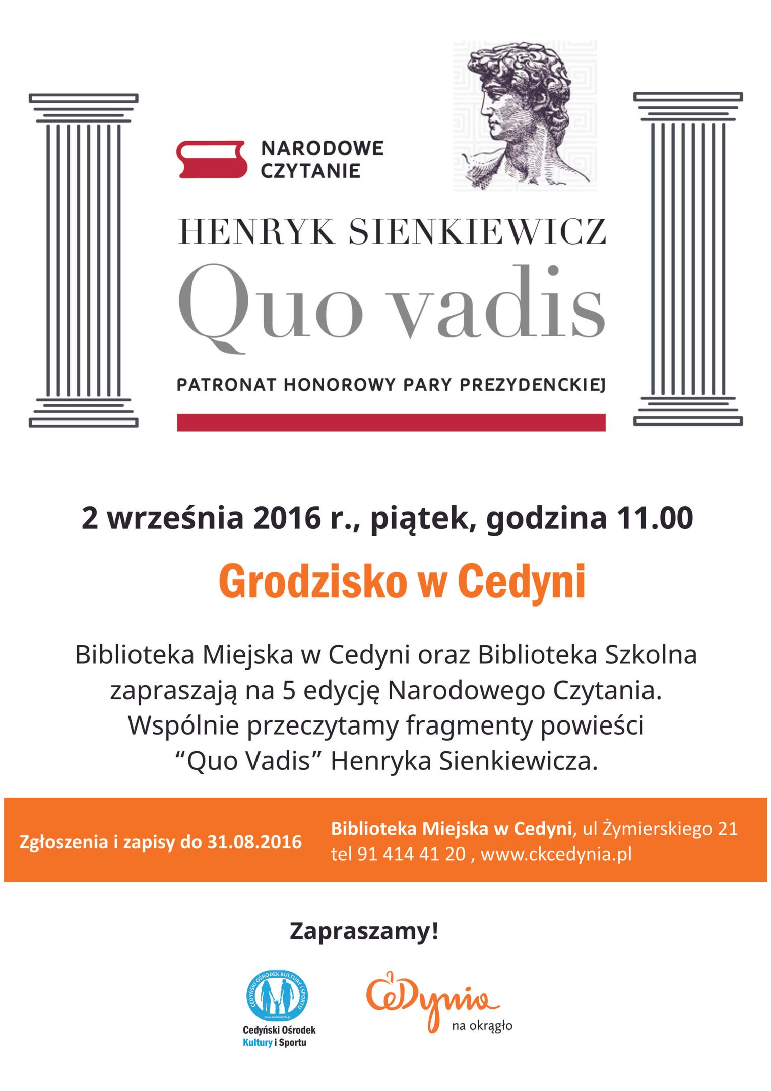 „Quo vadis” – powieść historyczna Henryka Sienkiewicza - została opublikowana w latach 1895-1896 w odcinkach w warszawskiej „Gazecie Polskiej” oraz w krakowskim dzienniku „Czas” i „Dzienniku Poznańskim”. Następnie wydano ją w formie druku zwartego. Pierwsze wydanie „Quo vadis” ukazało się w Krakowie w 1896 r. Powieść odniosła światowy sukces i została przetłumaczona na ponad pięćdziesiąt języków.