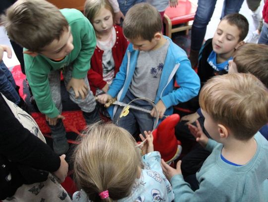 Tym informacjom zaprzecza grupa „Jaskółek” z Przedszkola nr 5 w Gryfinie. Po prostu „nie ma mocnych” na ich znajomość baśni. Przekonałam się o tym sama. Krótki wykład o historii książki, o baśni zakończony quizem na temat znajomości baśni w przeprowadzonej lekcji utwierdził mnie w tym fakcie. Proszę Państwa, to było niesamowite. Rewelacyjne odpowiedzi, rewelacyjne opowiadanie baśni, a konkurs „Wybierz to, co pasuje do baśni” został rozwiązany w mgnieniu oka. Czytana przeze mnie na głos książka utrzymana w baśniowej konwencji, opowiadająca o przygodach małej Klary w świecie, w którym zabawki ożywają, a księciem ich królestwa zostaje tytułowy Dziadek do Orzechów nie była dla nich nowością. Mój pomysł zaskoczenia przedszkolaków mało znaną baśnią spalił na panewkach. Słowa uznania dla „Jaskółek” i Pań uczących i wychowujących tę grupę. Nie mogę napisać, iż ja tam byłam, miód i wina piłam, ale jak to w baśniach bywa, wszystko dobrze się skończyło, a otrzymana przez nas w prezencie wyklejana wróżka czarodziejską różdżką ma nam spełniać marzenia.
