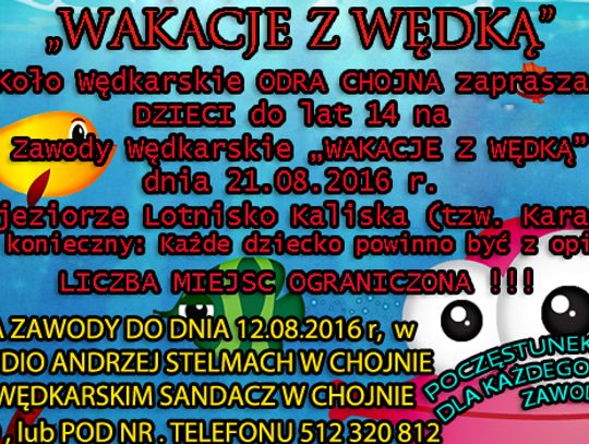 Zapisy na zawody przyjmujemy do dnia 12.08.2016 - Każde Dziecko powinno być pod opieką opiekuna.