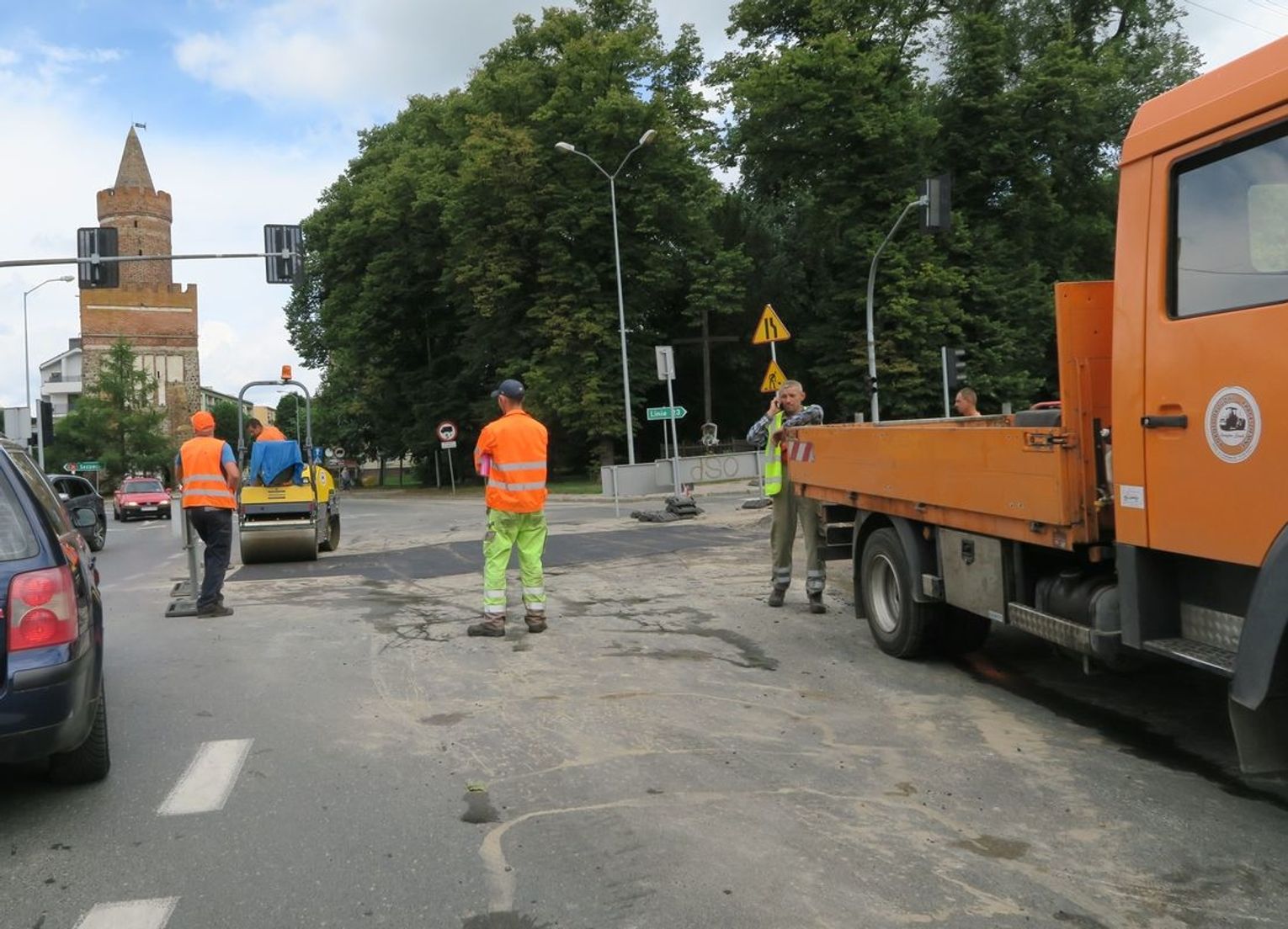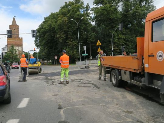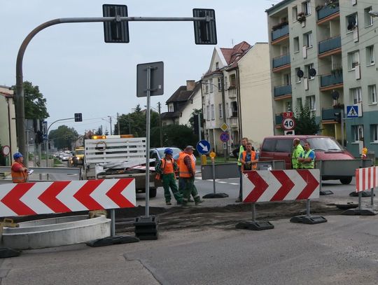Likwidują dziurę na środku skrzyżowania