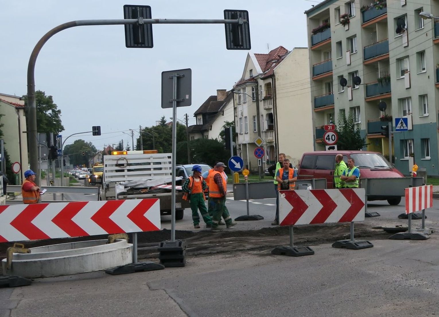 Dziś dziura jest już zasypana. Nadal jednak pracownicy kierują ruchem. My, kierowcy oraz piesi musimy uzbroić sią w cierpliwość.