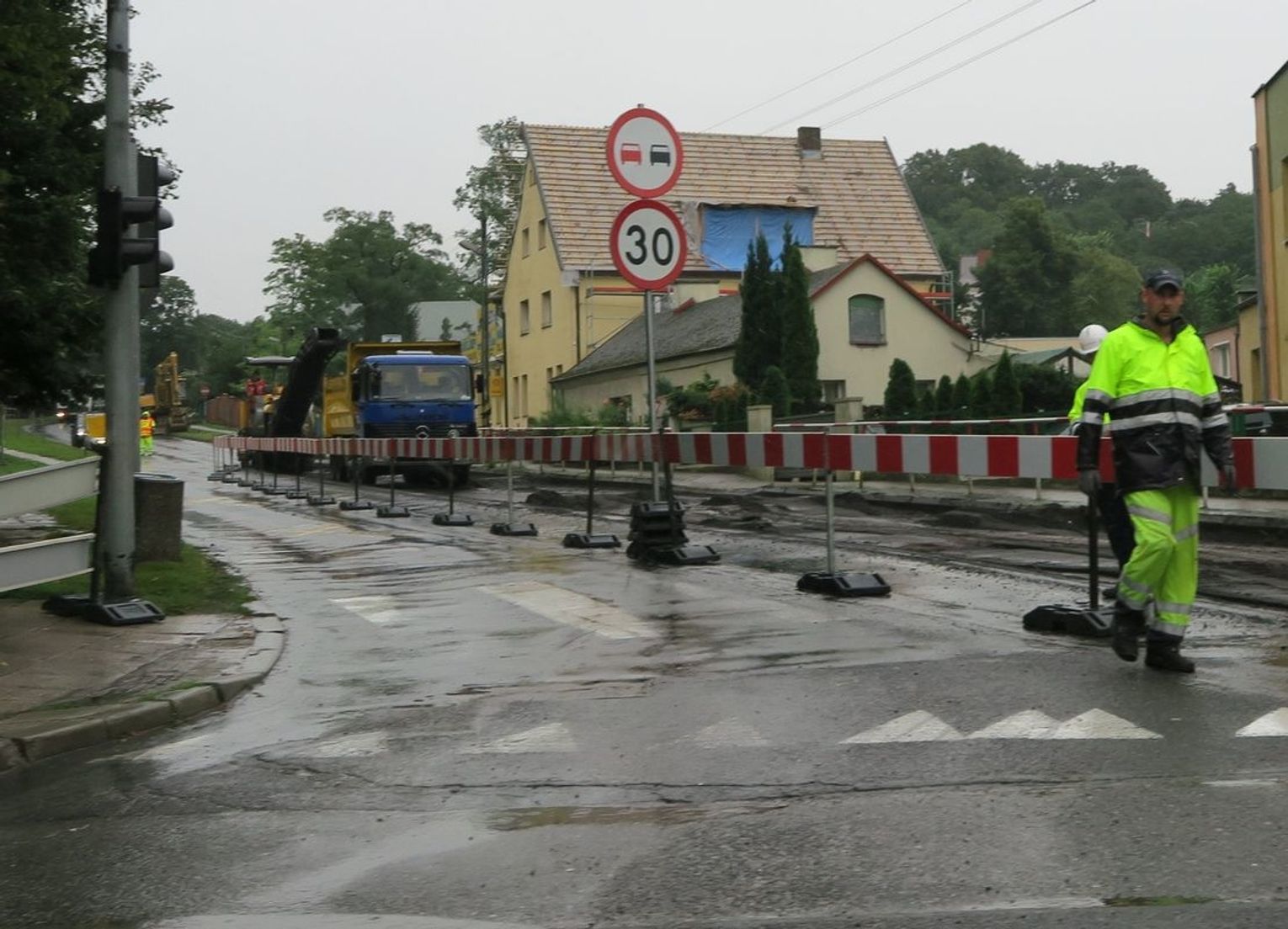 Uwaga kierowcy! Dziś, 5 sierpnia 2016 r. robotnicy weszli z robotami na ulicę Armii Krajowej koło straży pożarnej w Gryfinie. Przejazd odbywa się jednym pasem.
