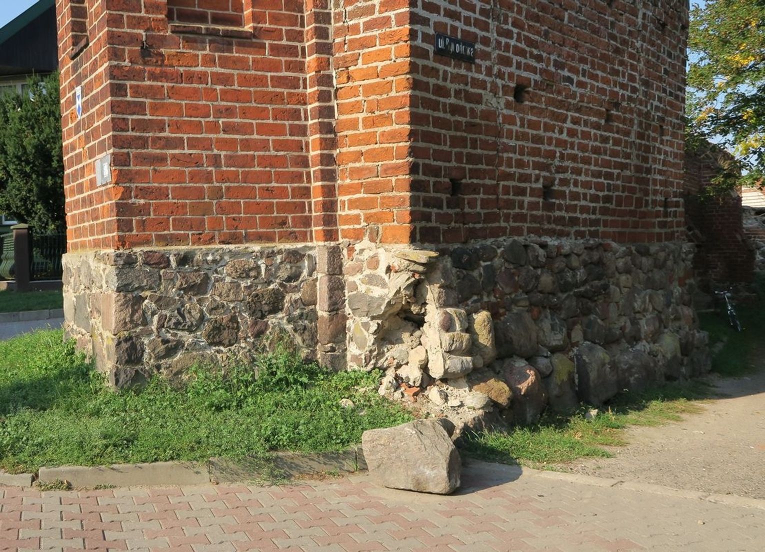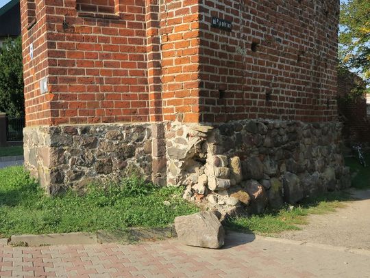 W fotogalerii mamy dwa zdjęcia: gdy głaz „wyleciał” z murów i już po naprawie.