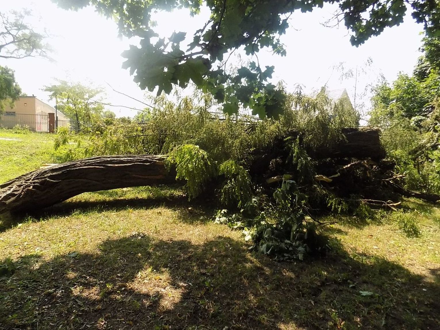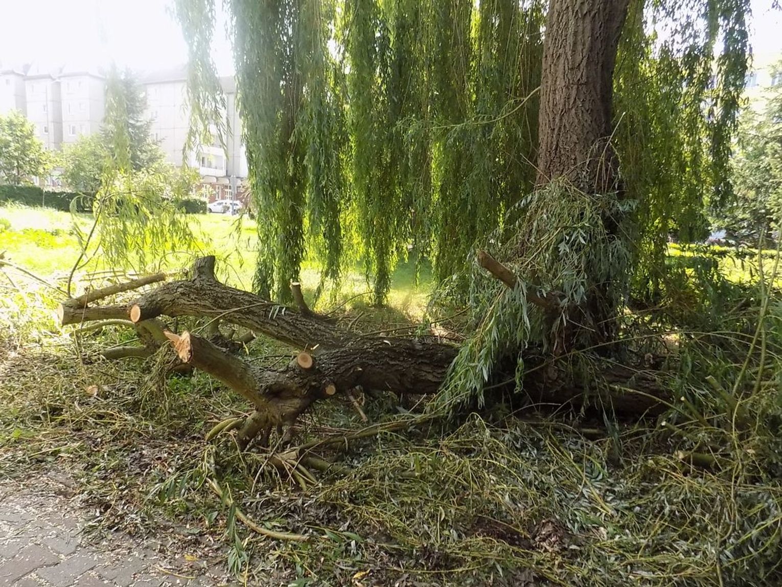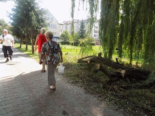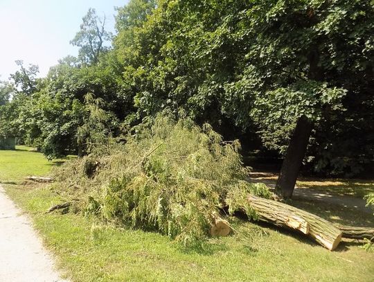 Kilka potężnych konarów odłamało się ostatnio z drzew i runęło na ziemię w Gryfinie. Tak stało się w parku niedaleko postoju taksówek obok dworca PKP oraz po drugiej stronie parku od ul. Armii Krajowej, a także koło Biedronki przy ul. Bolesława Chrobrego. Połamane wielkie gałęzie leżą i czekają na uprzątnięcie przez specjalne służby. Jednak te nie spieszą się z robotą.