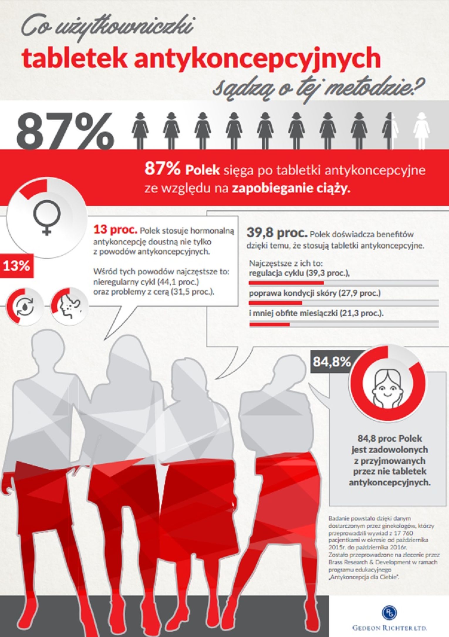 Ginekolodzy uczestniczący w programu edukacyjnego „Antykoncepcja dla Ciebie” sprawdzili, jaki stosunek do antykoncepcji doustnej mają kobiety, które po nią sięgają. Badanie postaw pacjentek kontynuujących lub rozpoczynających doustną antykoncepcję hormonalną w zakresie prawidłowego stosowania doustnych tabletek antykoncepcyjnych zostało przeprowadzone przez firmę Brass Research & Development w ramach wspomnianego programu. Badanie powstało dzięki danym dostarczonym przez ginekologów, którzy przeprowadzili wywiad z 17 760 pacjentkami w okresie od października 2015r. do października 2016r.