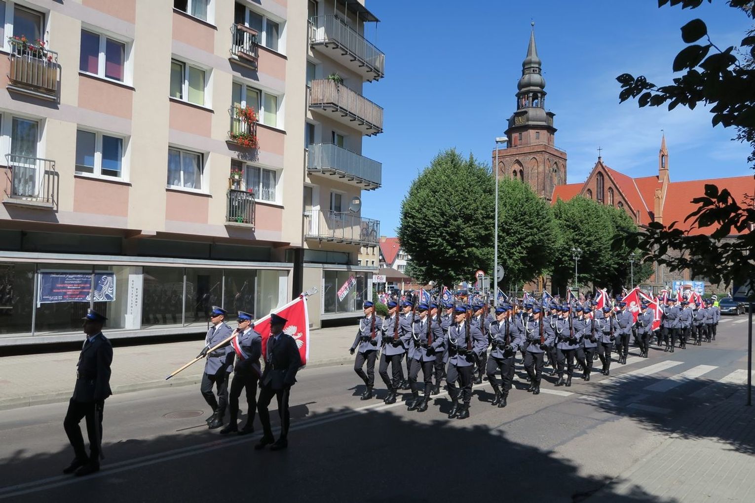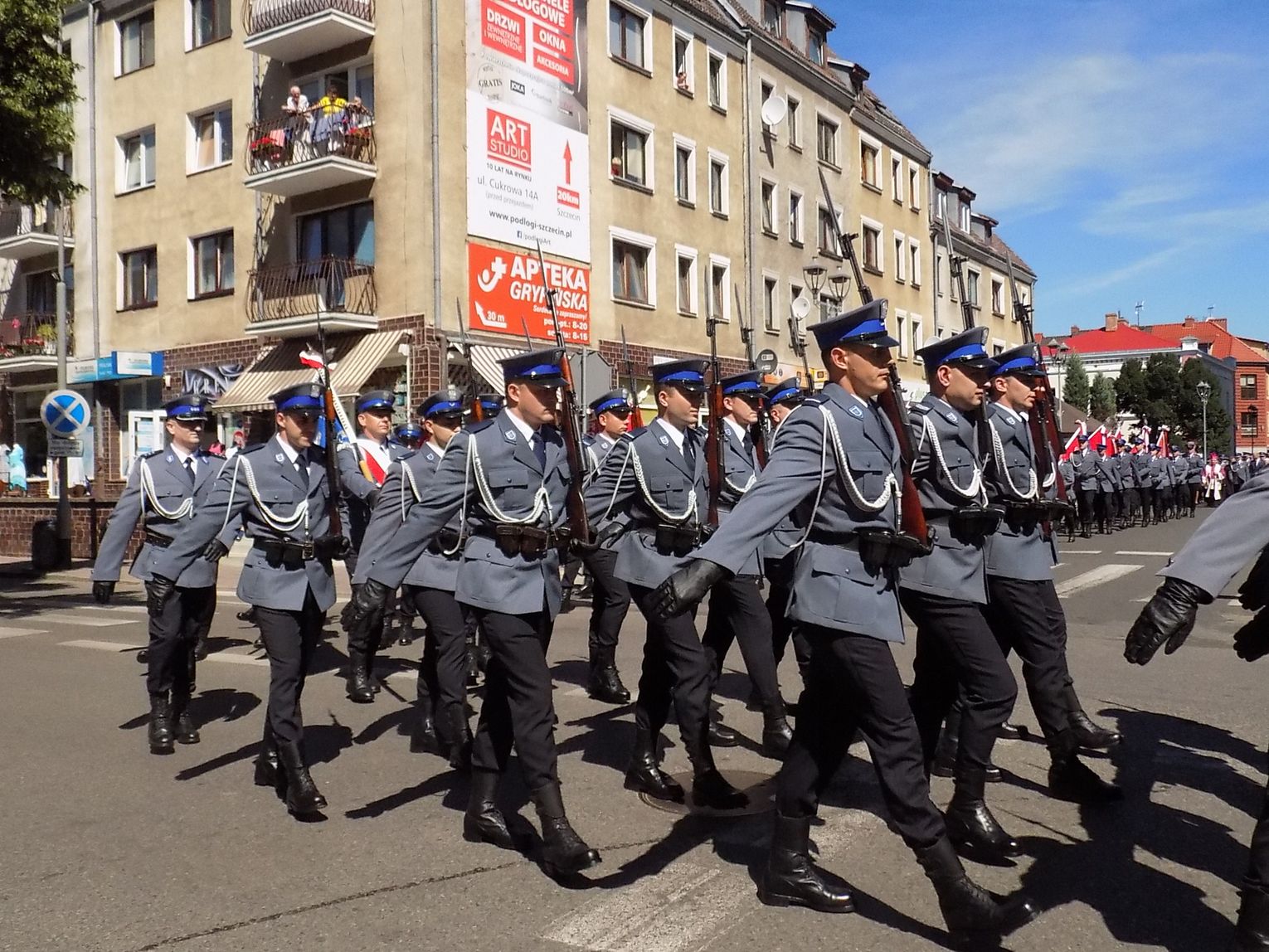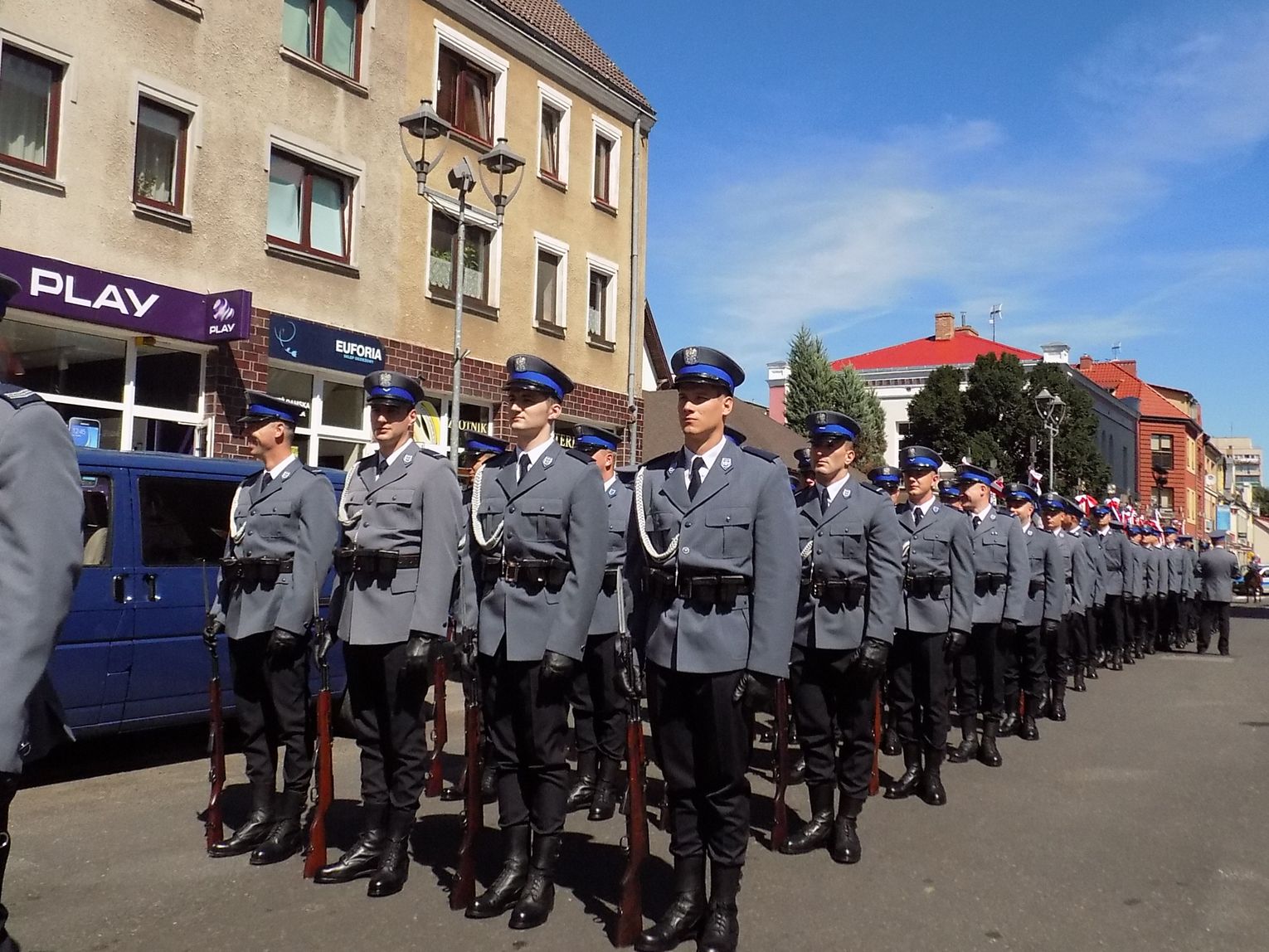 Wszyscy po mszy św. udali się do Komendy Powiatowej przy ul. Policyjnej w Gryfinie, gdzie nastąpiło uroczyste otwarcie nowej siedziby. Zapraszamy do fotorelacji (ponad 100 zdjęć) z przemarszu gryfińskimi ulicami (Kościelną, Piastów i Bolesława Chrobrego oraz Policyjną).