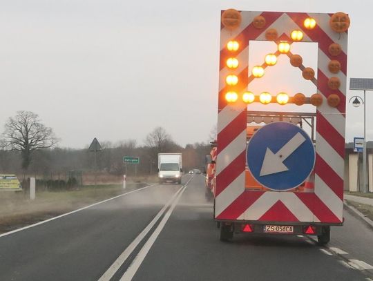 Uwaga kierowcy! Na trasie Gryfino-Widuchowa trwa naprawa jezdni. Uzupełniane są ubytki w asfalcie. Pace wykonuje Generalna Dyrekcja Dróg Krajowych i Autostrad Oddział w Szczecinie.