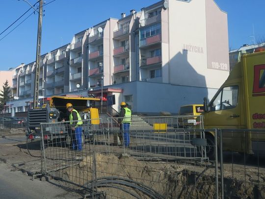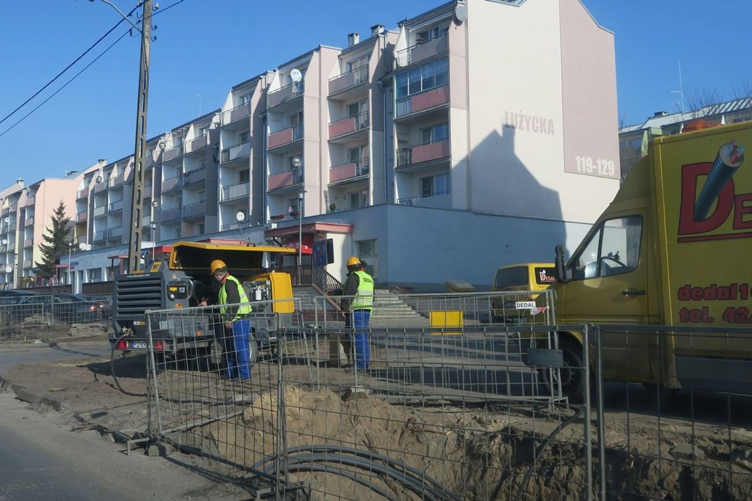 Trawają prace przy kładzeniu nowego ciepłociągu w ulicę Łużycką w Gryfinie. Położono już ok. 500 metrów. Cała długość ma wynosić 2,3 km. Główne prace trwają teraz w okolicy Zespołu Szkół Ponadgimnazjalnych.