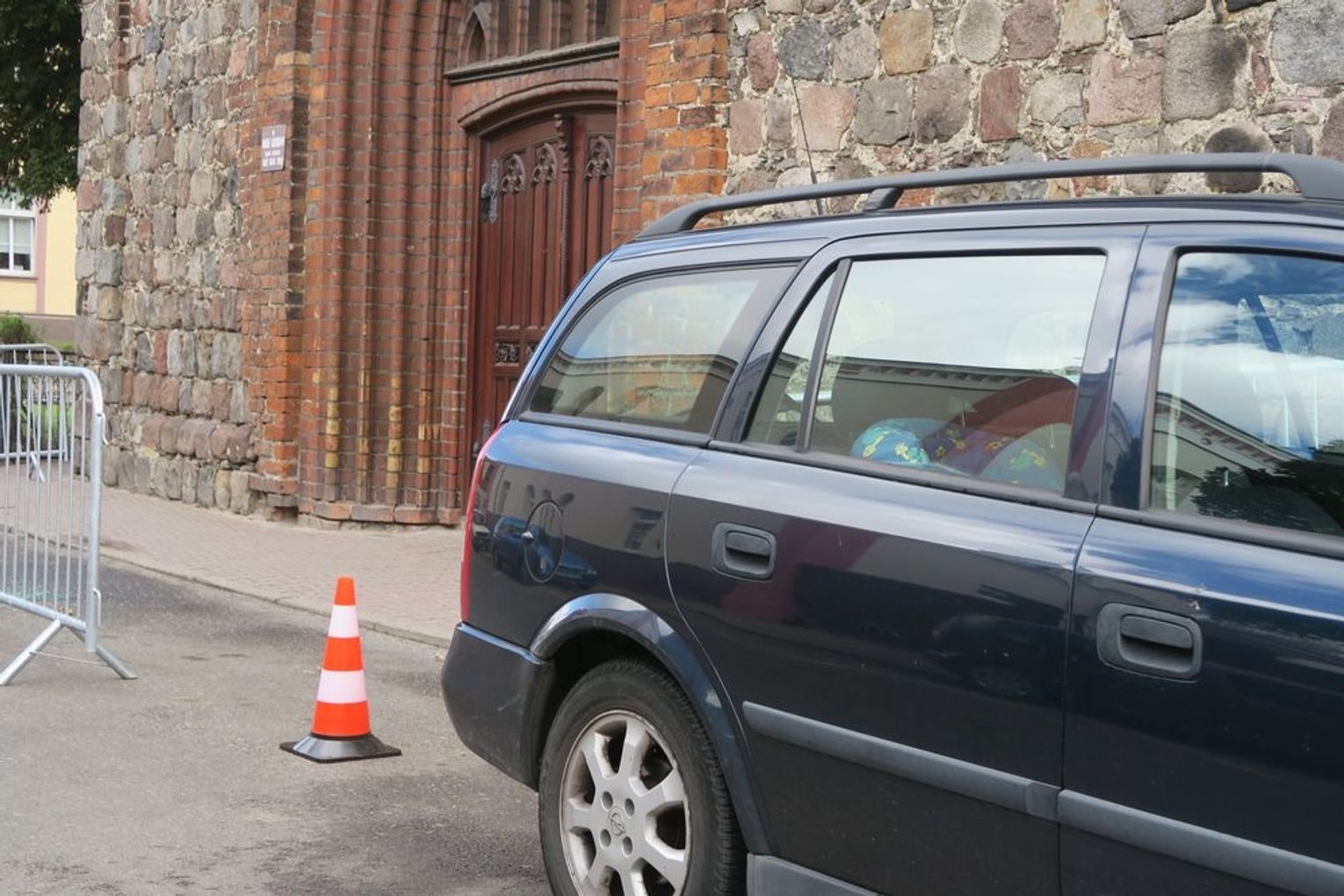 Dziś (we wtorek, 11 kwietnia 2017 r.) koło południa pod drzwiami kościoła narodzenia Najświętszej Marii Panny w Gryfinie stał samochód osobowy. Nagle rozległ się huk. To gzyms spadł na tylną szybę auta.