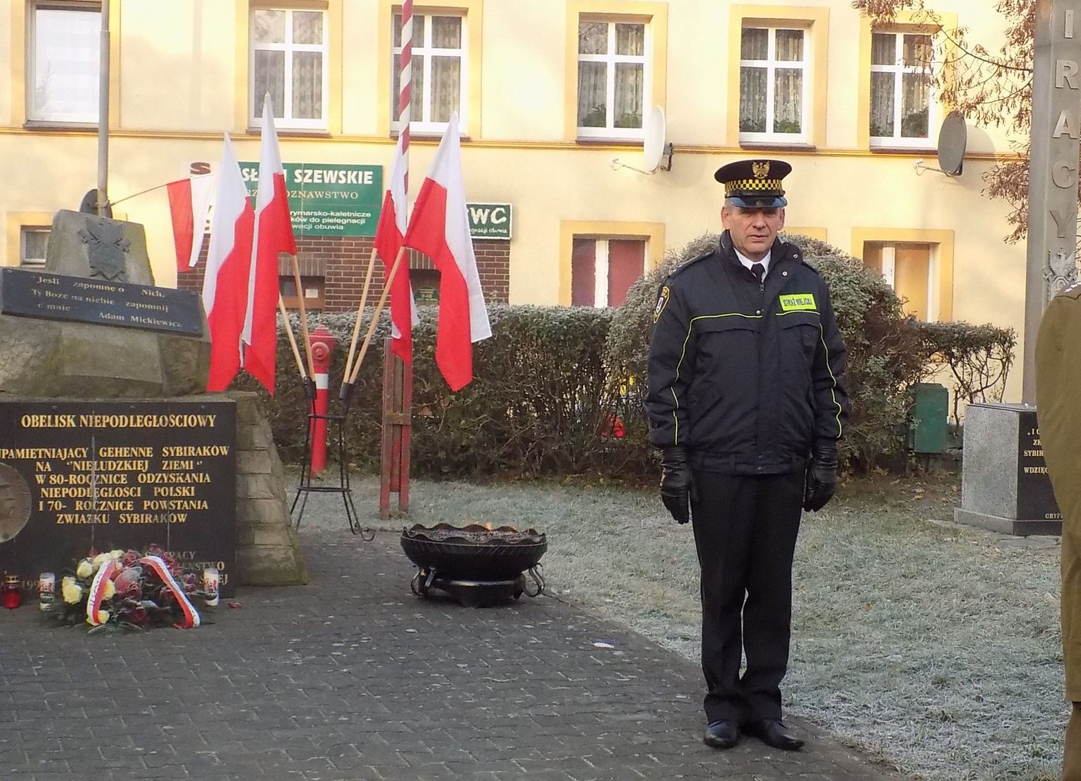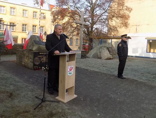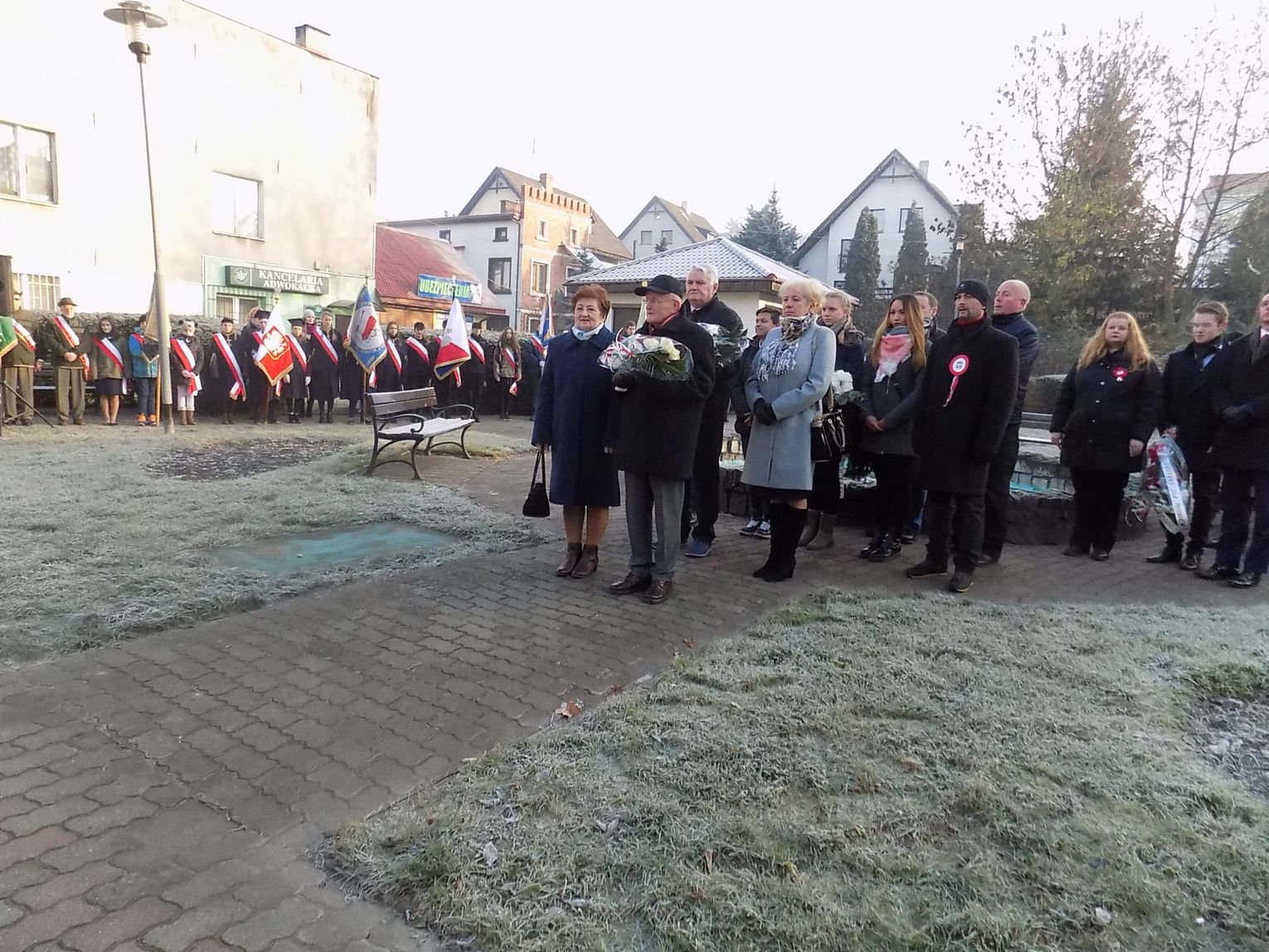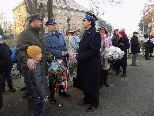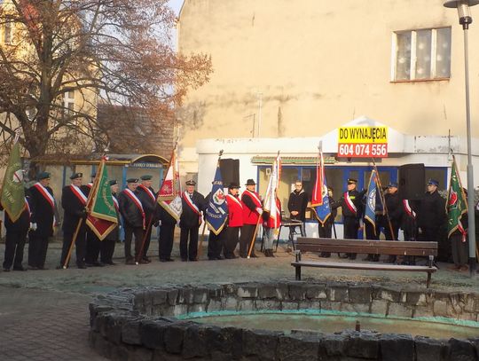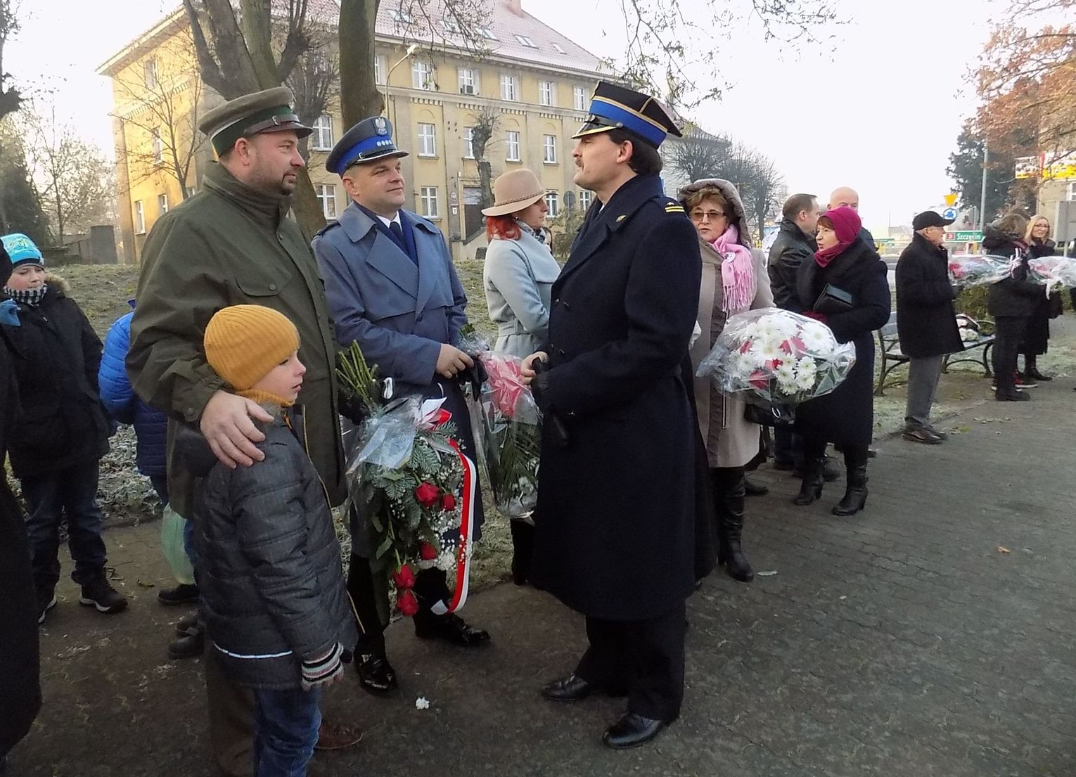 Przy pomniku coraz więcej wiązanek, kwiatów i zniczy. Chyląc się w pokłonie, odchodziły sztandary. Spoza chmur powoli zaczęło wyglądać listopadowe słońce, jakby rozświetlając to niepodległościowe święto.