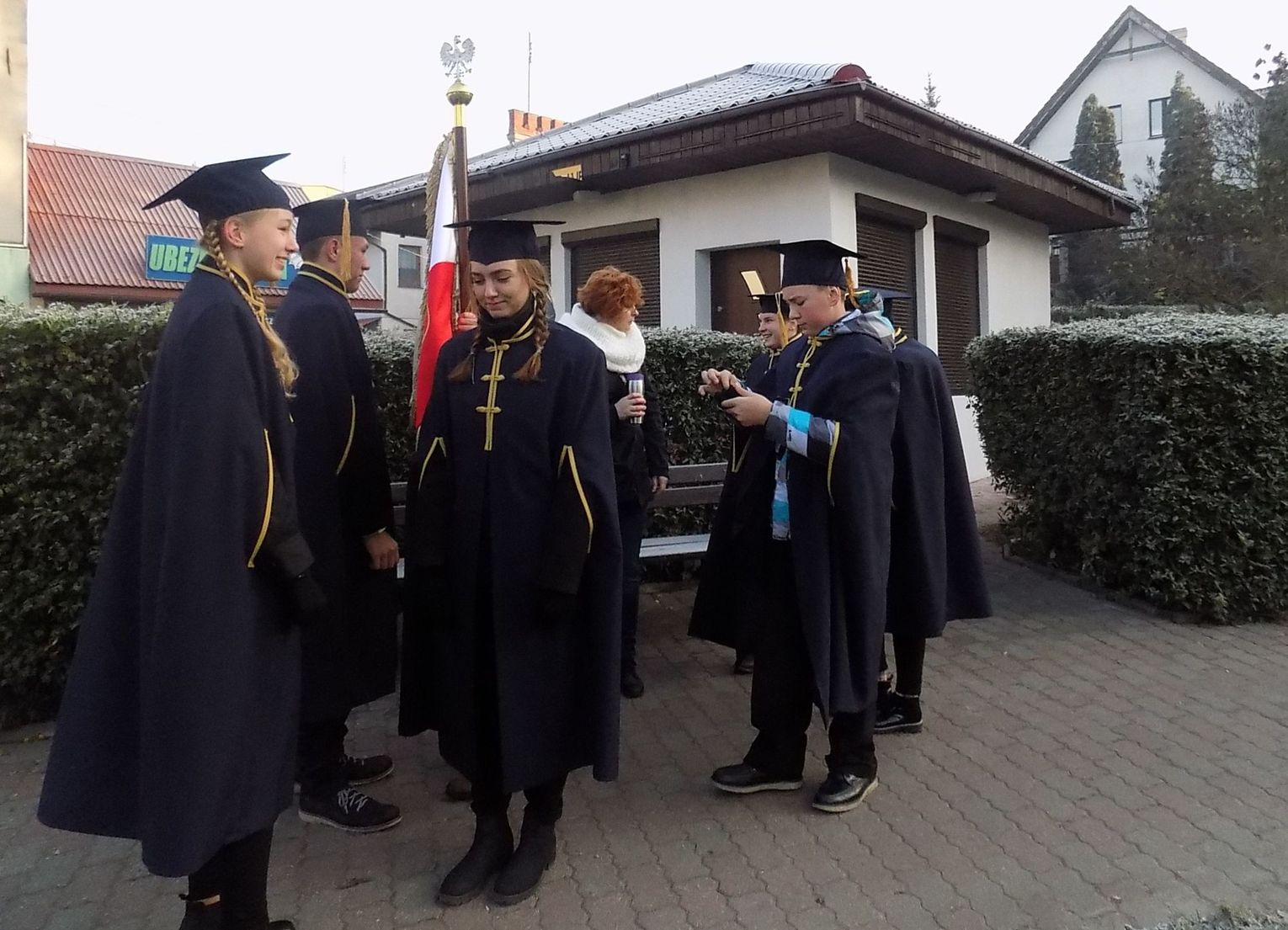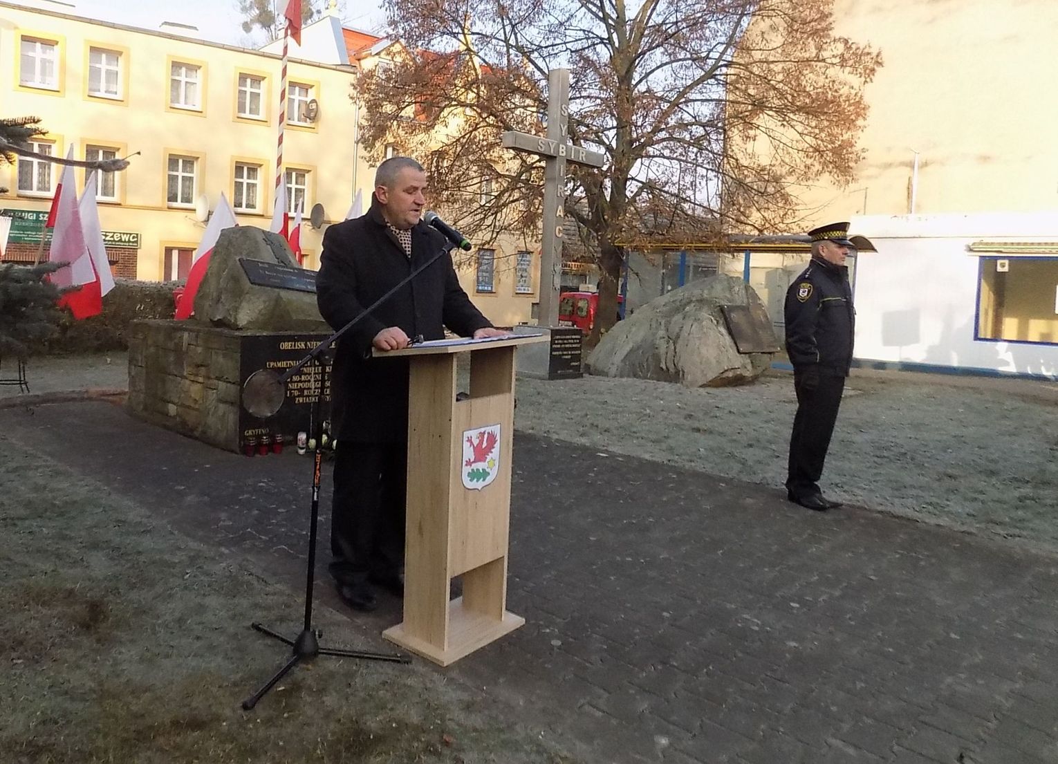 Wiceburmistrz podziękował wszystkim obecnym za wspólne uczestniczenie w tak ważnym święcie. W pięknych słowach podziękował nauczycielom, którzy przyszli wraz ze swoją młodzieżą. Młodzieżą, która w przyszłości będzie obchodziła kolejne rocznice.