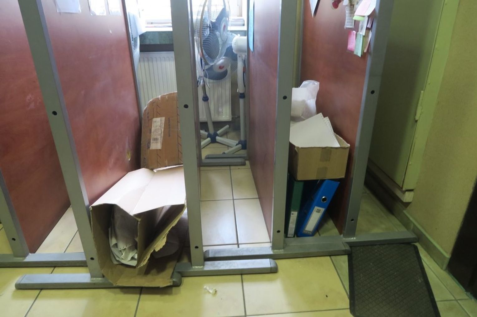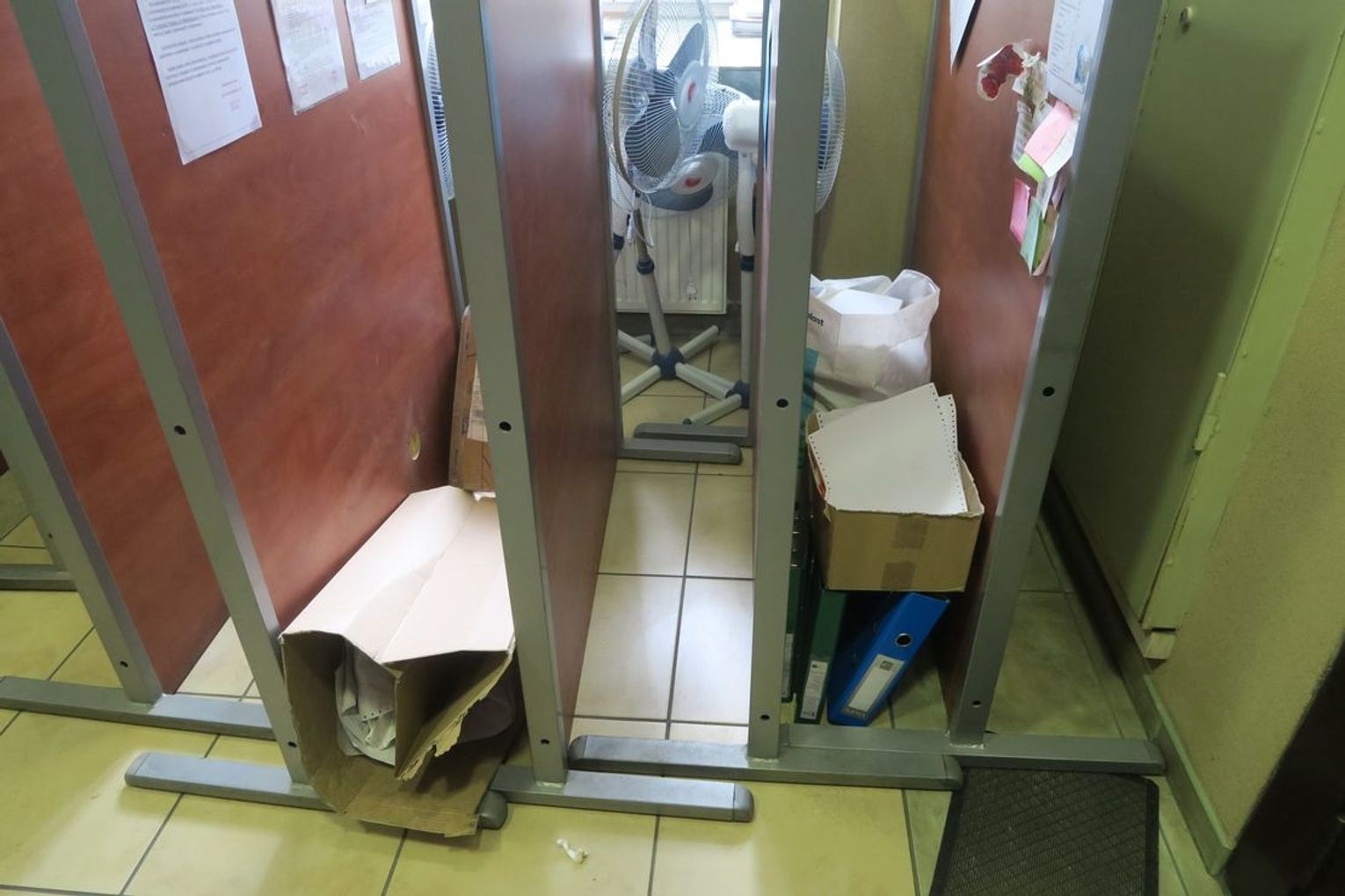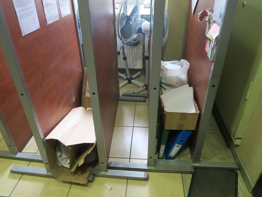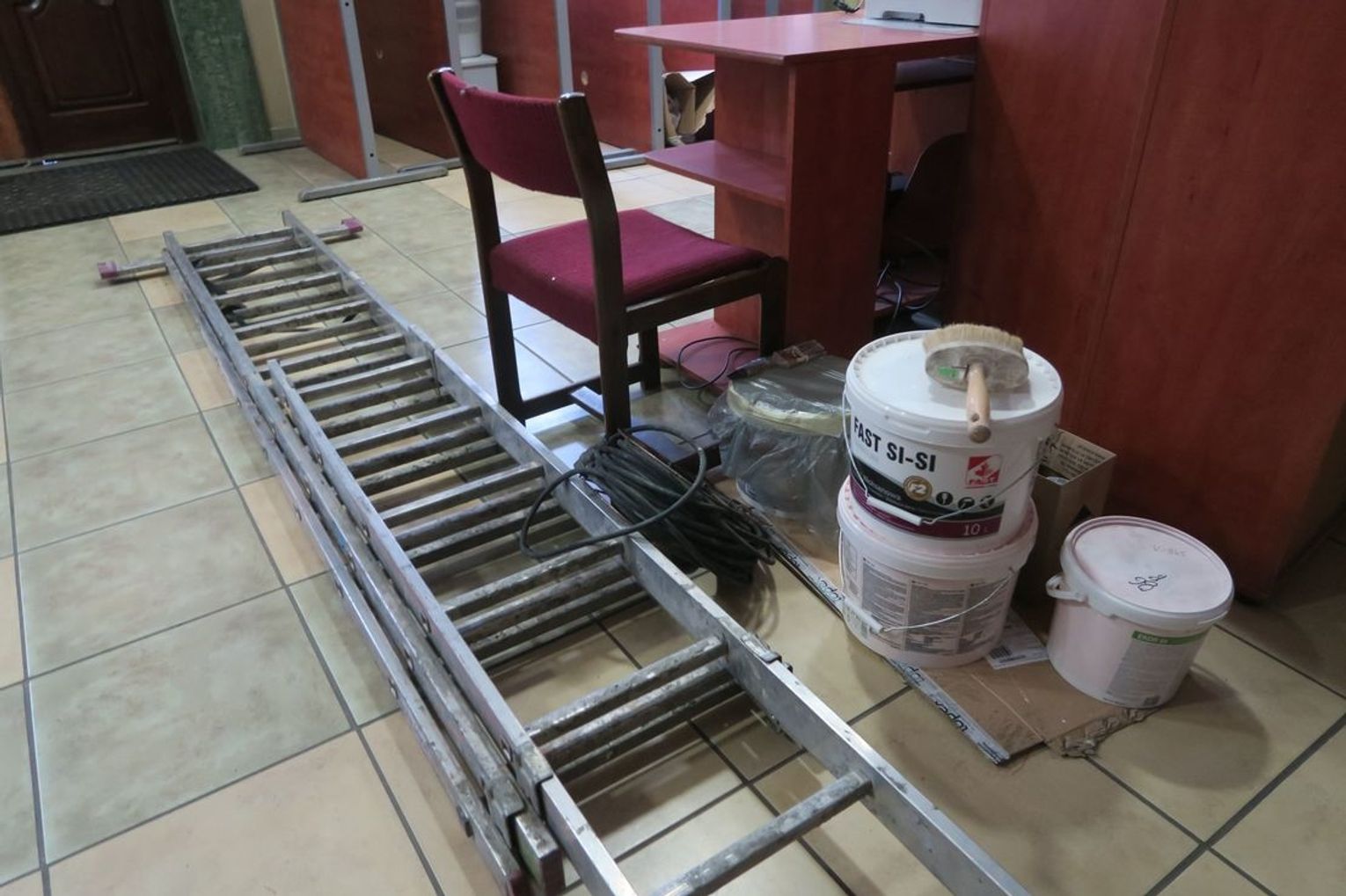 Już wchodząc do budynku Urzędu Miejskiego w Mieszkowicach można było dziś, 13 kwietnia 2017 r. nadziać się na drabinę. Bałagan jest na parterze i na piętrze, gdzie znajduje się sala ślubów. W związku z tym dzisiejsza sesja Rady Miejskiej w Mieszkowicach odbyła się w domu kultury.