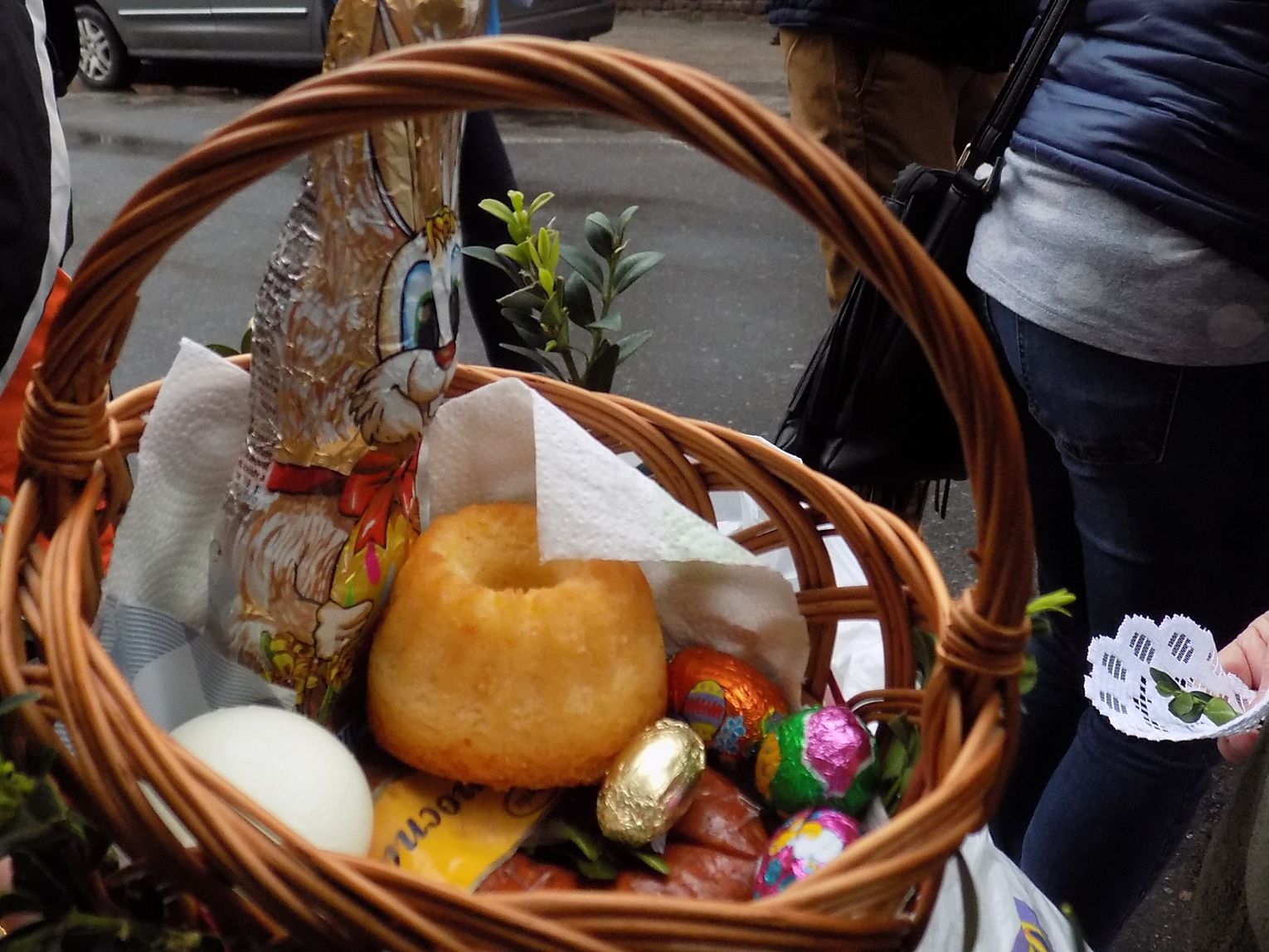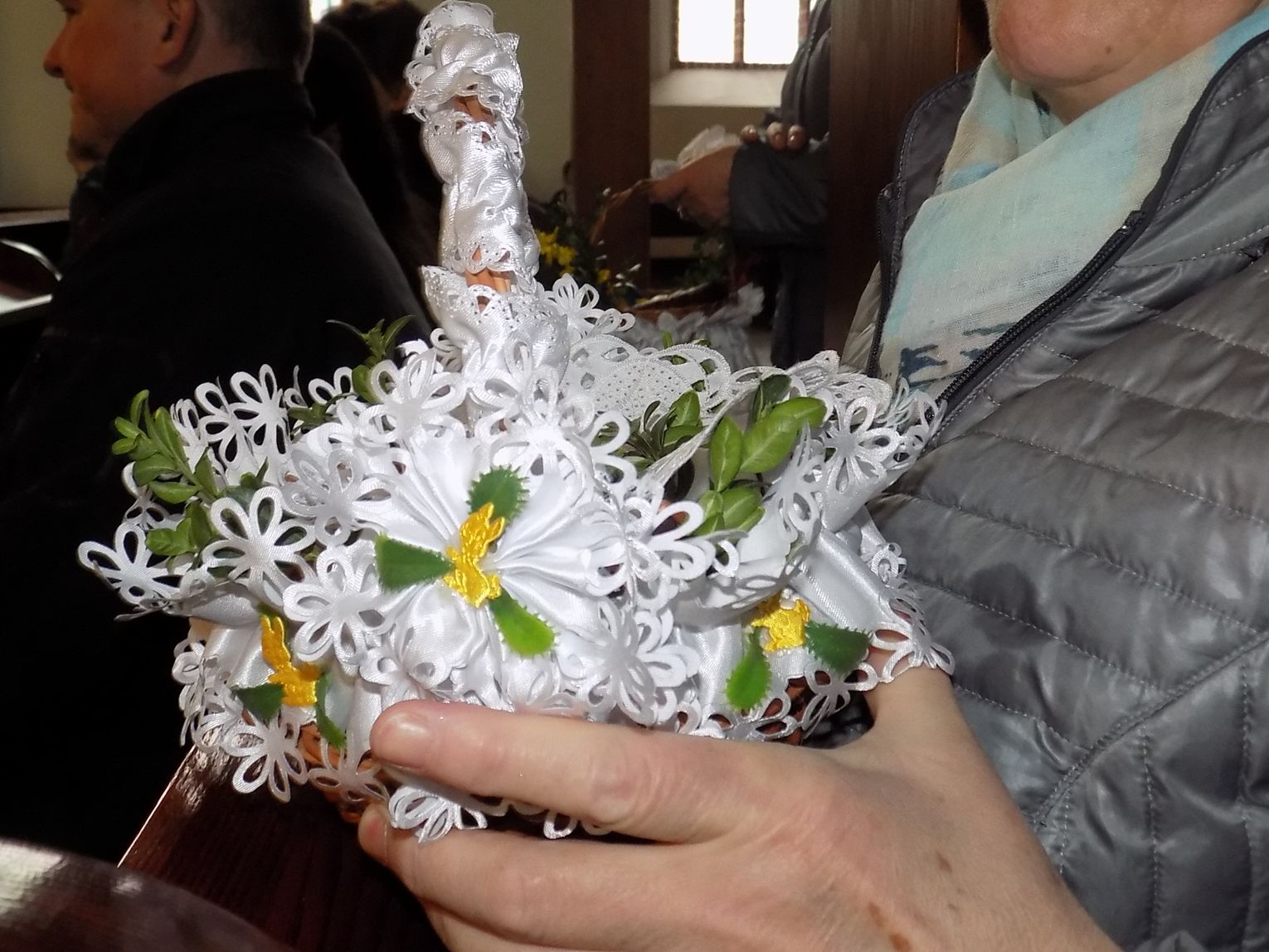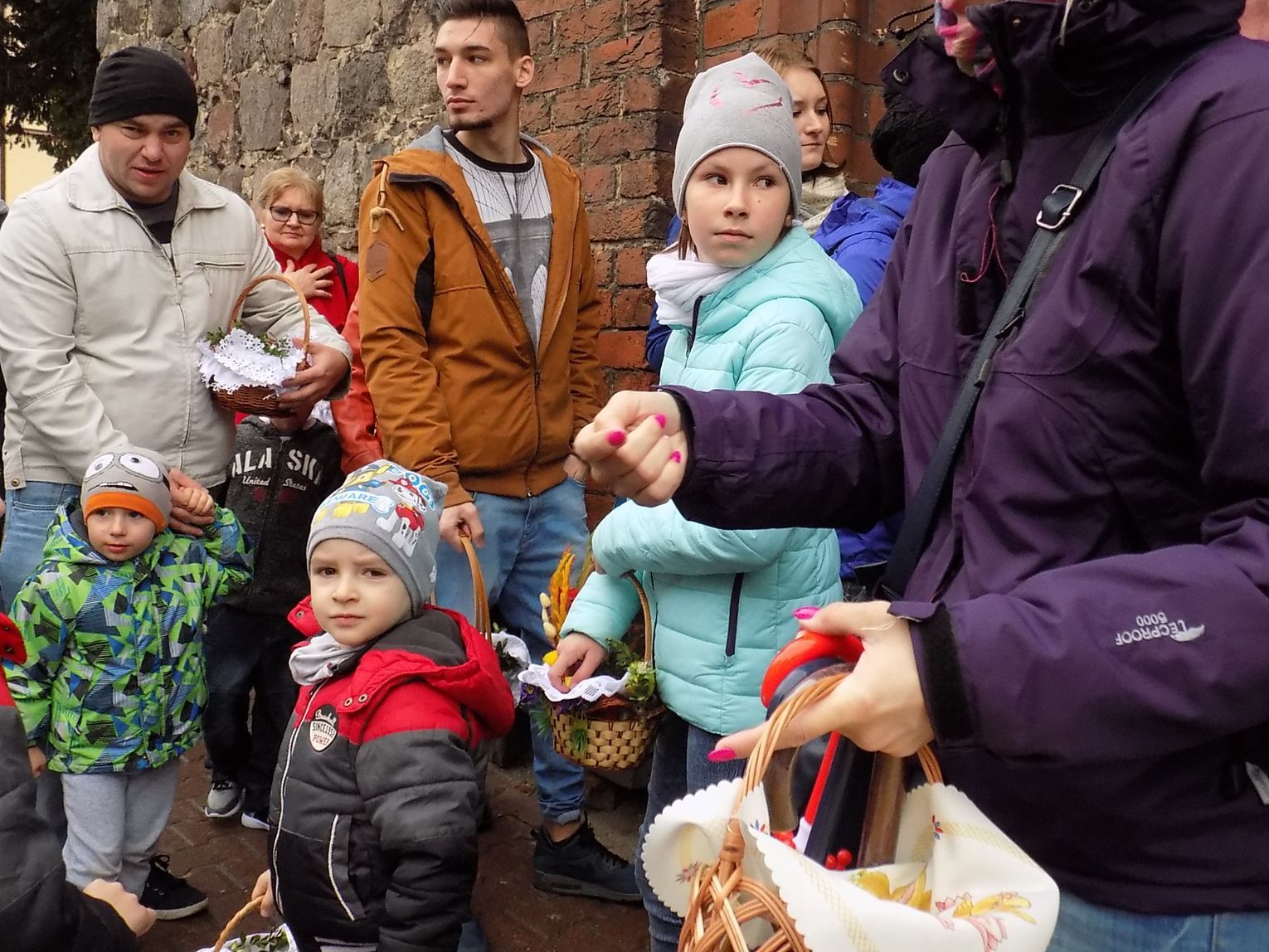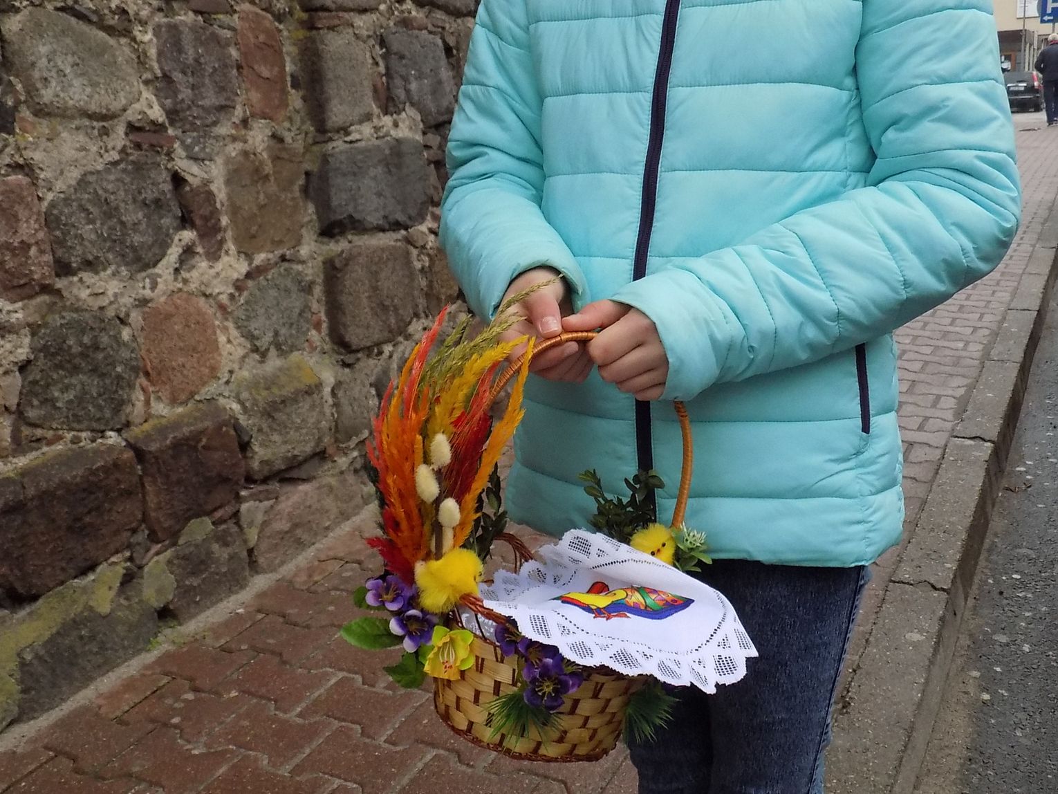 A znaleźć się w mim muszą przeróżne produkty, a każdy jest symbolem czegoś innego. Biały baranek to zmartwychwstanie, jajko to symbol życia. Nie może zabraknąć soli ani chleba oraz wędliny. Oprócz tych różności pełno kolorów i radości. Kościół NNMP w Gryfinie co chwila zapełnia się wiernymi. Z wszystkich stron miasta spieszą ludzie z koszykami. Dzieci, młodzież, dorośli. Każdy czas przeznaczony na święcenie to ogromne tłumy w kościele. Żadne święto nie gromadzi tylu ludzi, co chęć podzielenia się święconym jajkiem przy świątecznym stole.