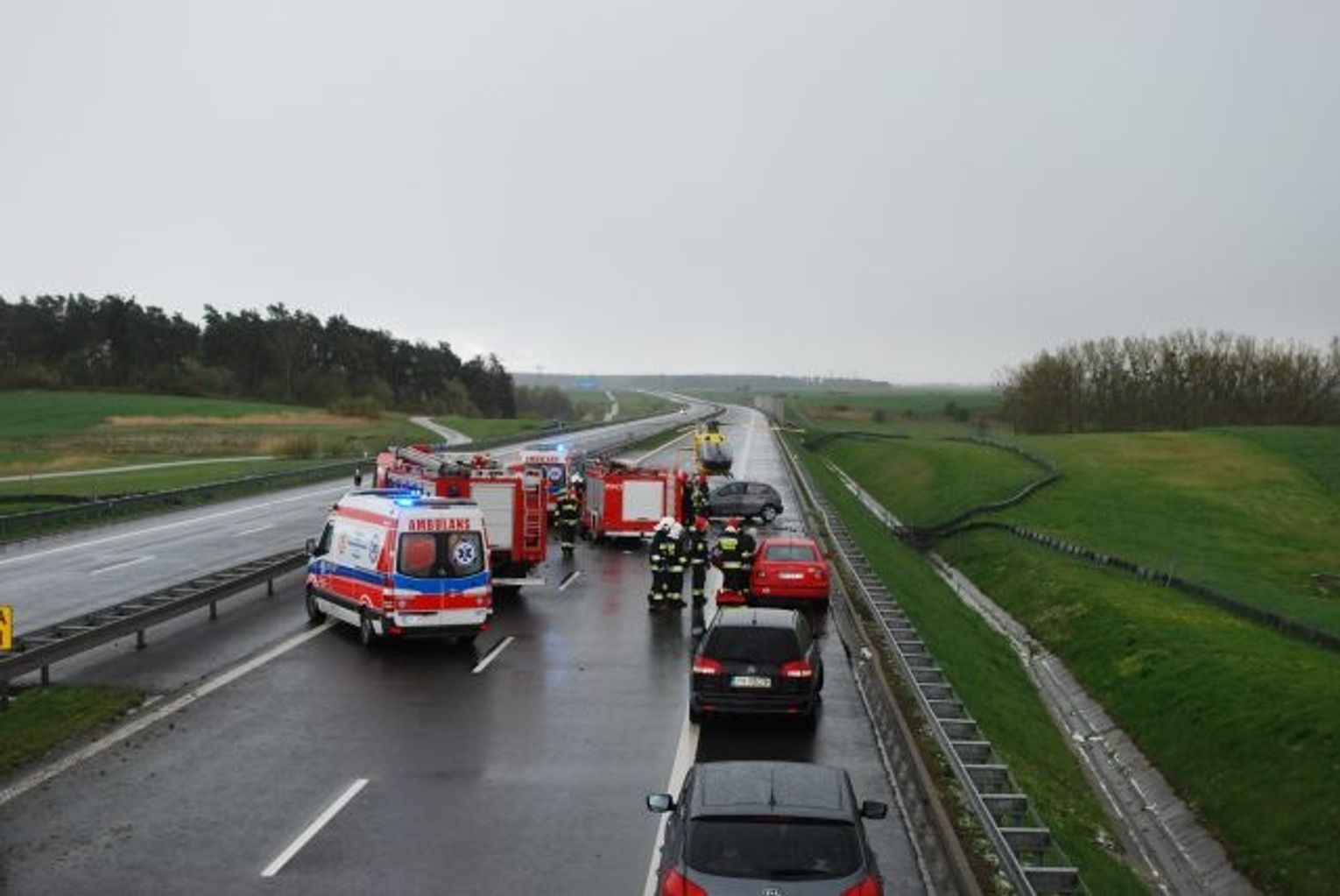 W akcji ratowniczej udział brali trzy zastępy JRG Gryfino, 4 zastępy OSP, oficer operacyjny z KP PSP Gryfino, 5 zespołów ratownictwa medycznego; lotnicze pogotowie ratunkowe, zarządca drogi oraz policja.