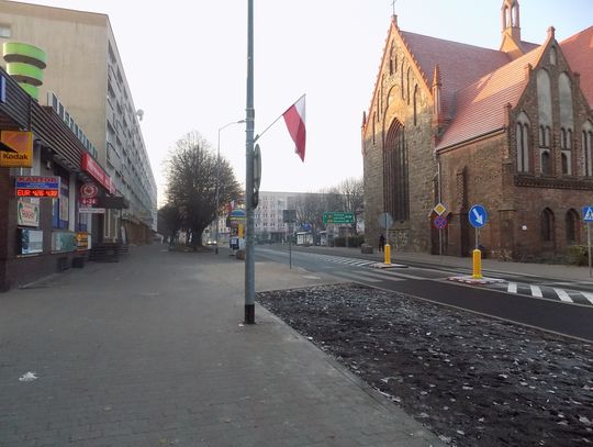 Flagi na latarniach zamontowano, ale nie na wszystkich ulicach. Jeśli popatrzymy na bloki mieszkalne, to znajdziemy kilkanaście miejsc, gdzie na balkonach wiatr łopoce biało-czerwoną flagą. Przy witrynach sklepowych i zakładach w zasadzie nic związanego z listopadowym świętem nie widać.