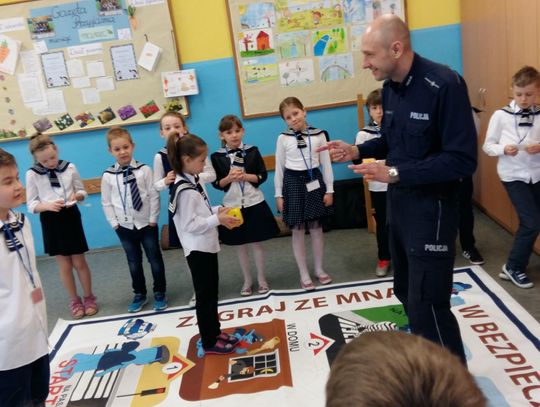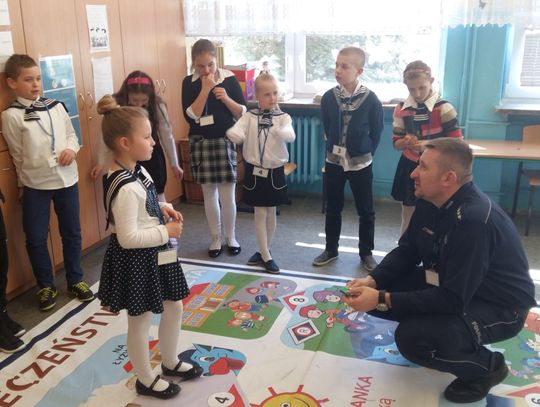Pierwszoklasiści klas Szkoły Podstawowej nr 2 w Gryfinie gościli gryfińskich policjantów. Funkcjonariusze przeprowadzili spotkanie na temat bezpieczeństwa ruchu drogowego, a także kontaktu z osobami obcymi.
