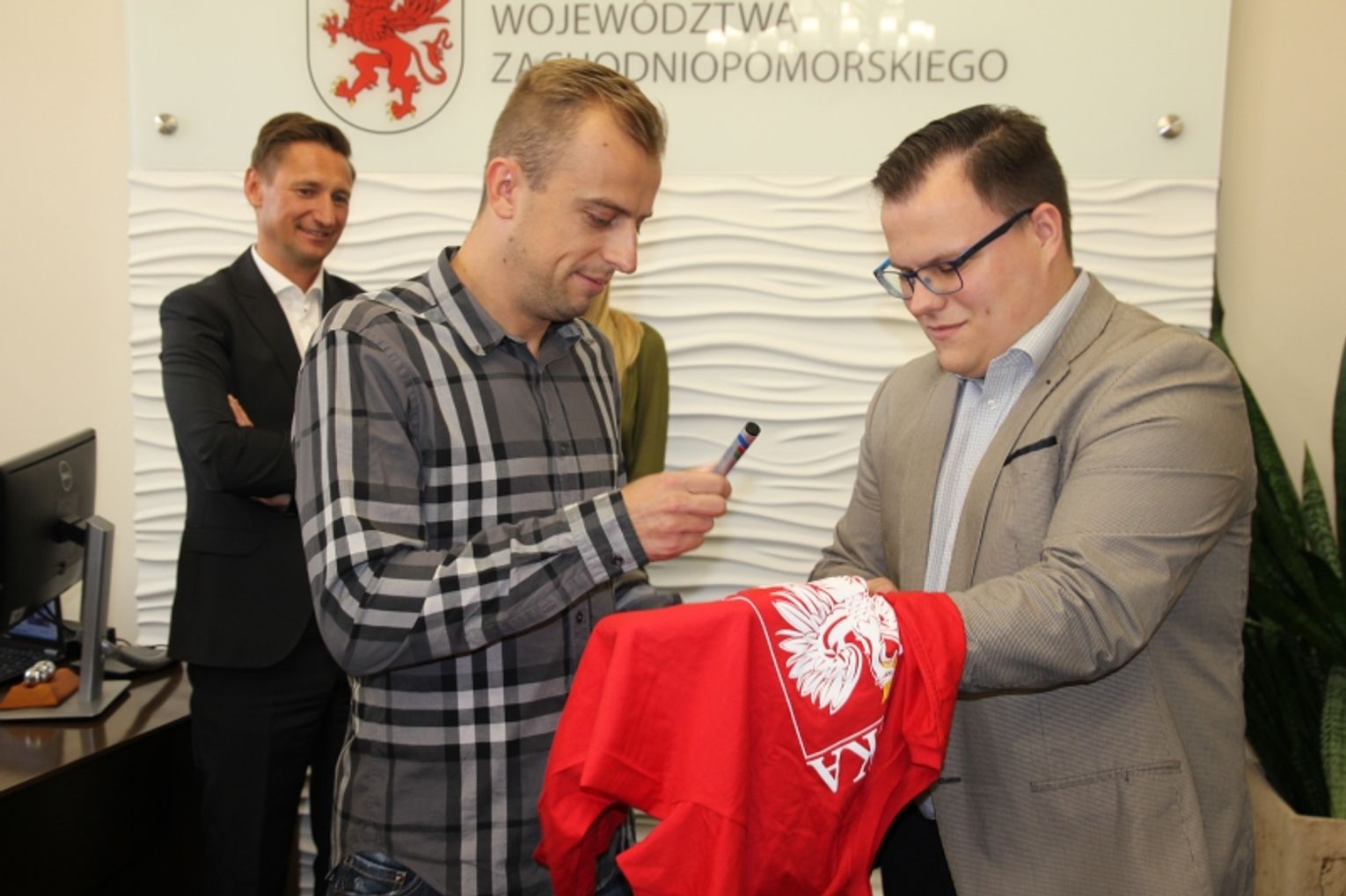 -Witamy w domu. Nie ukrywam, że bardzo się cieszę z tego spotkania. Za ambicję, za walką, za determinację i za wynik słowa wielkiego uznania. Coraz częściej polscy sportowcy dają nam powody do satysfakcji i dumy. Tym bardziej to cenne, kiedy po sukcesy sięgają zawodnicy z Pomorza Zachodniego - mówił marszałek województwa Olgierd Geblewicz. - Bez wątpienia w ostatnich dniach Polaków łączyła piłka - dodał.