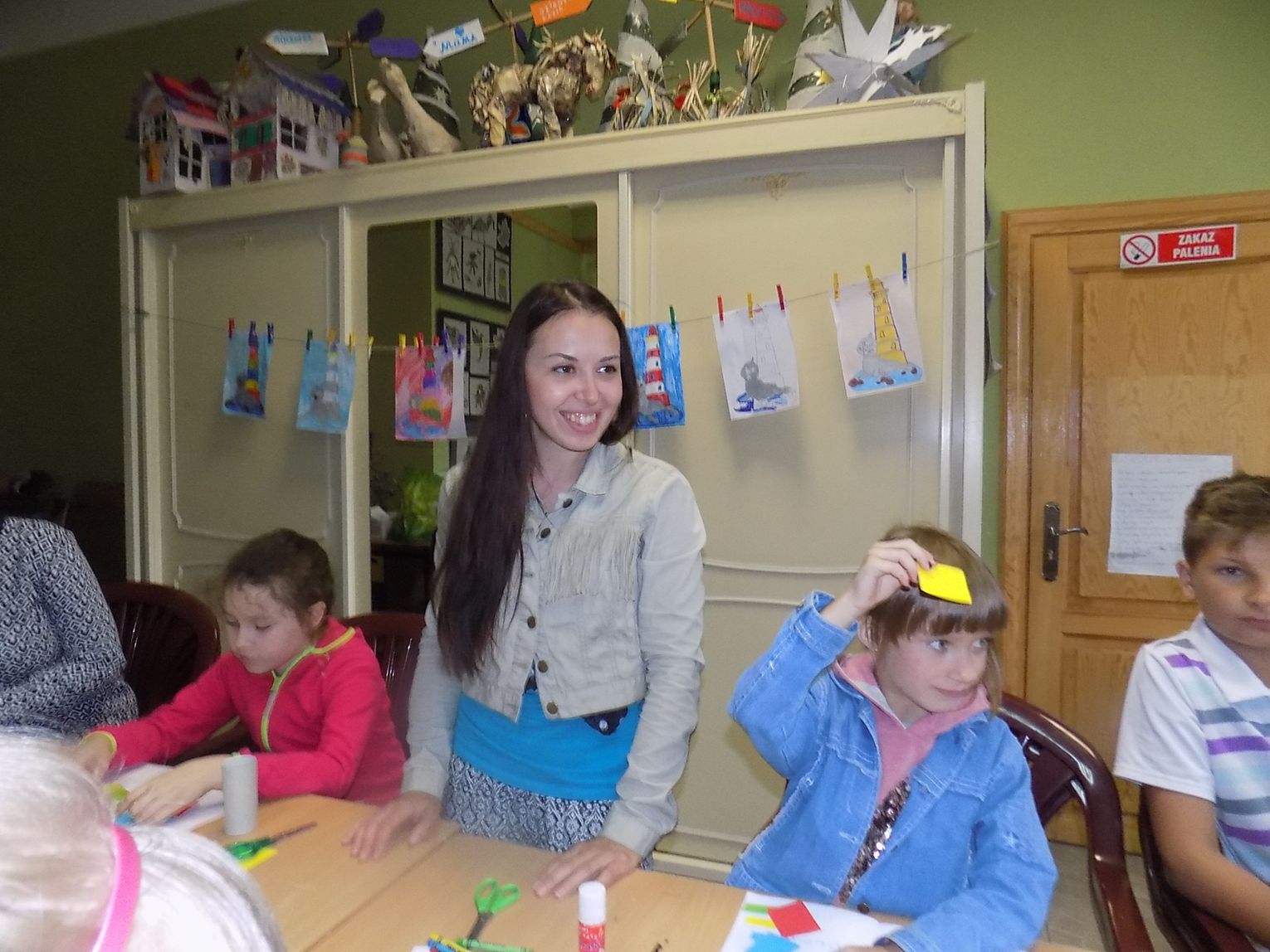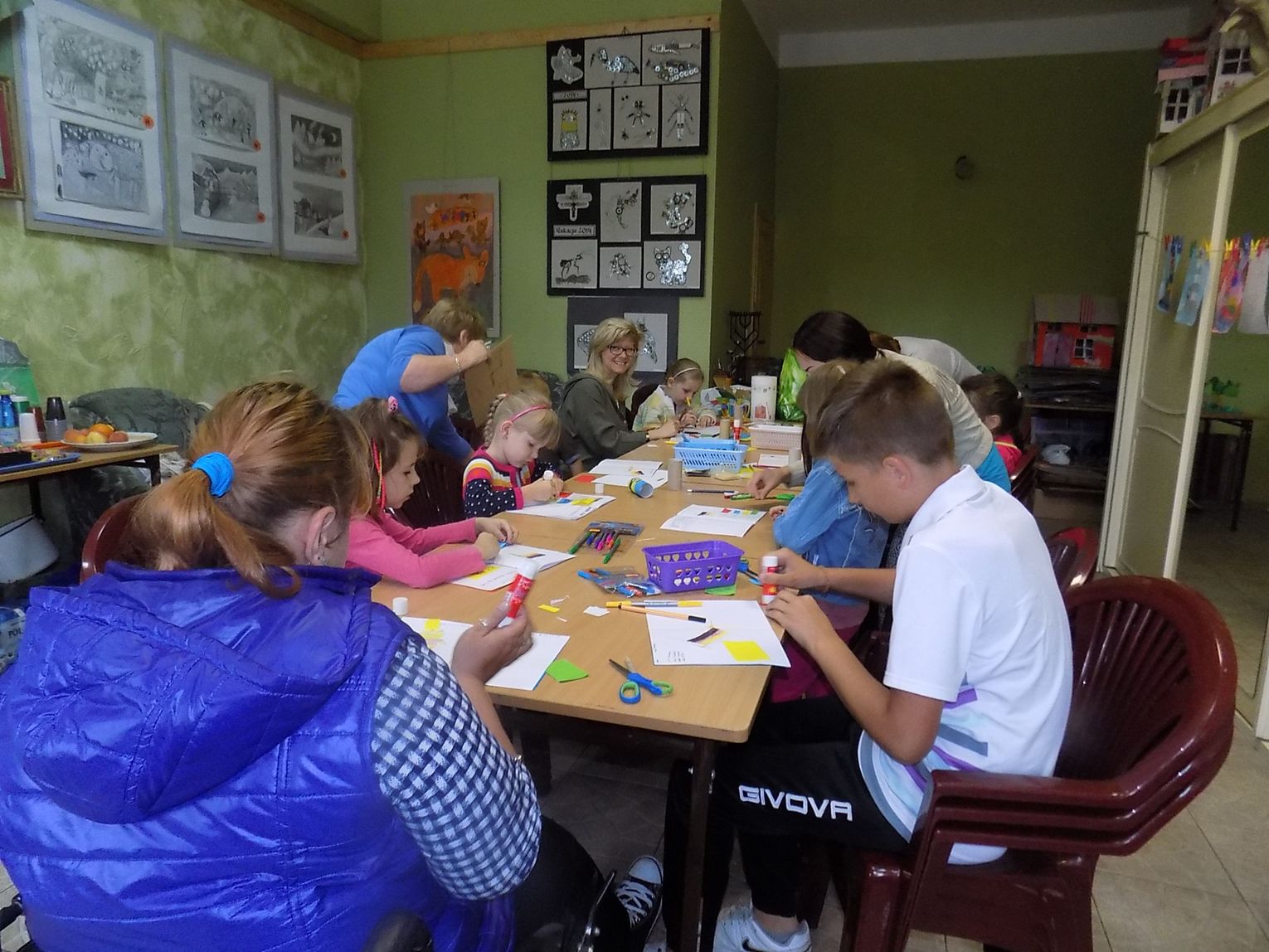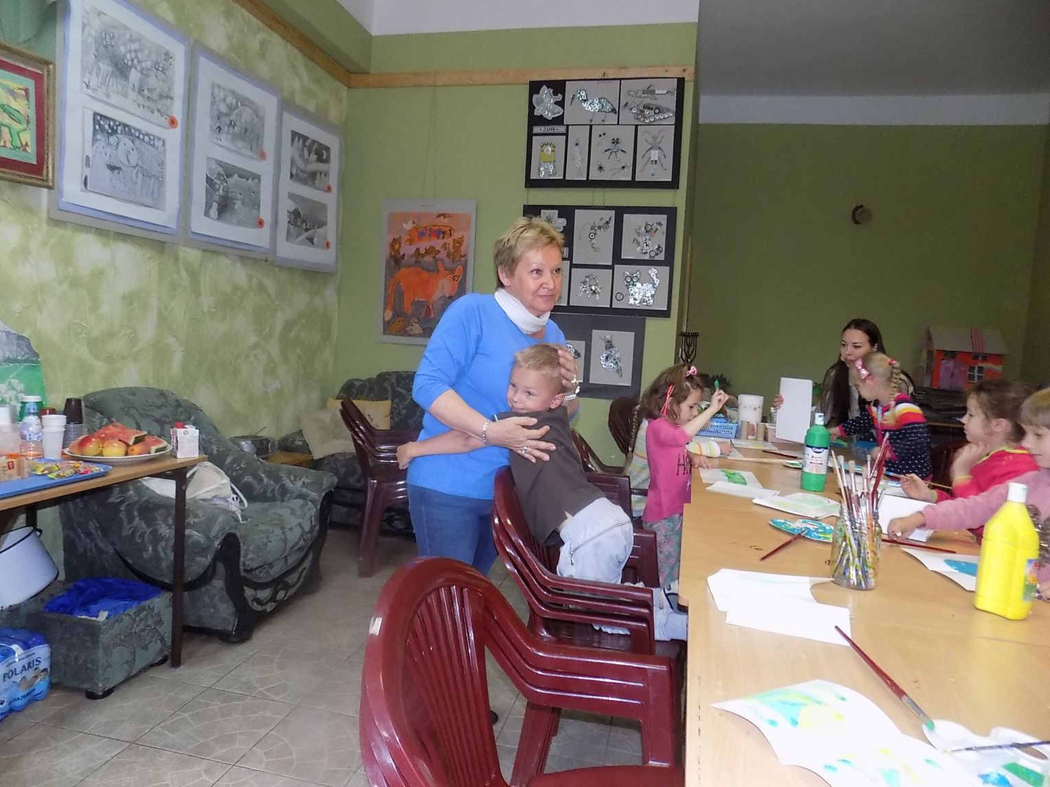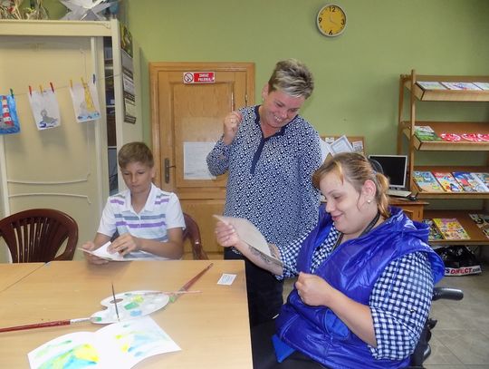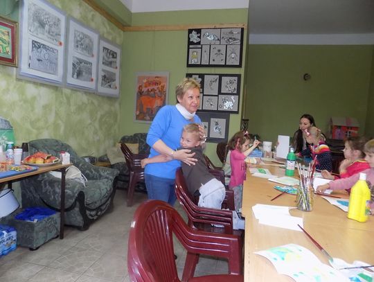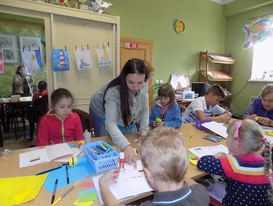 W świetlicy w Daleszewie - popularnej „Zagrodzie” w środowe przedpołudnie (6 lipca) gromada dzieci tworzyła rysunkowo-malarskie arcydzieła. Zajęcia plastyczne prowadzone były przez wolontariuszki Antoninę z Ukrainy (zwaną Tosią) i Sabinę z Niemiec. Małe problemy językowe zupełnie dzieciom nie przeszkadzały. Do zabawy włączyły się również dyrektorka miejscowej podstawówki Beata Wójcik, która ze świetlicą współpracuje przez cały rok oraz kierowniczka „Zagrody” Ania Żamojda.