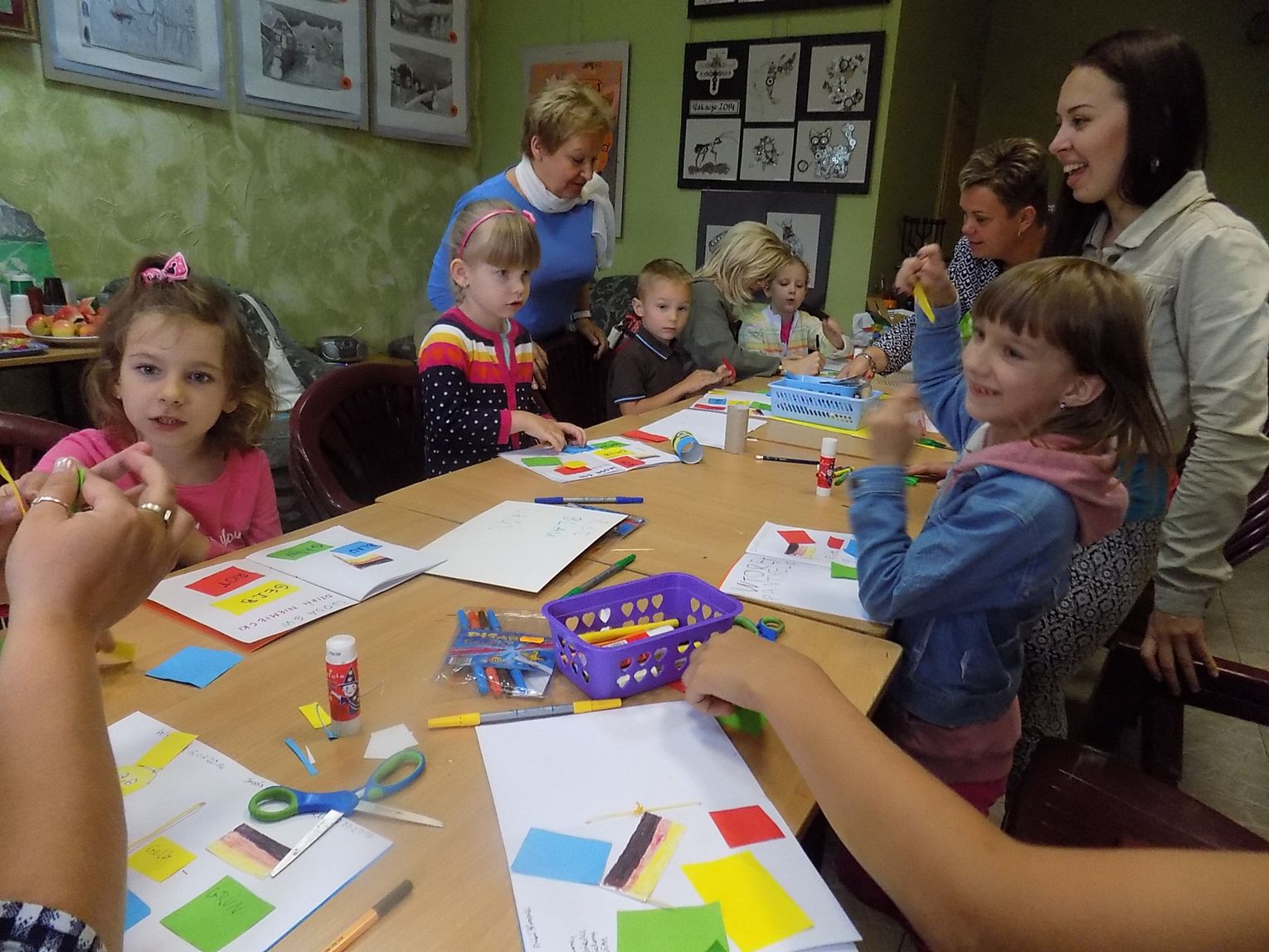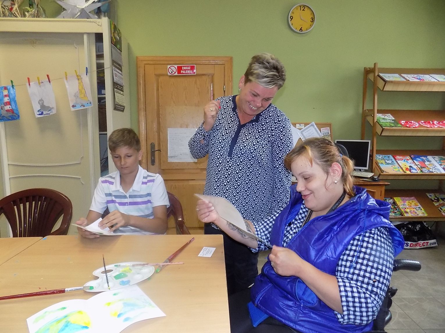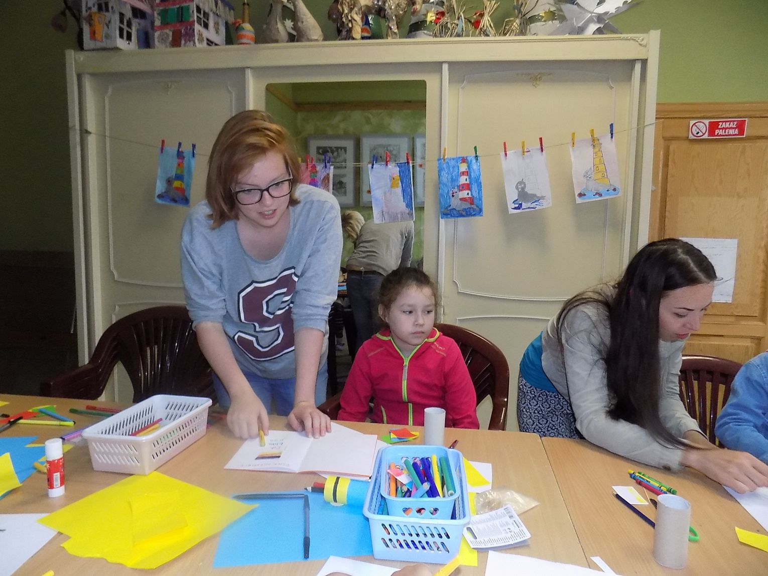 W świetlicy w Daleszewie - popularnej „Zagrodzie” w środowe przedpołudnie (6 lipca) gromada dzieci tworzyła rysunkowo-malarskie arcydzieła. Zajęcia plastyczne prowadzone były przez wolontariuszki Antoninę z Ukrainy (zwaną Tosią) i Sabinę z Niemiec. Małe problemy językowe zupełnie dzieciom nie przeszkadzały. Do zabawy włączyły się również dyrektorka miejscowej podstawówki Beata Wójcik, która ze świetlicą współpracuje przez cały rok oraz kierowniczka „Zagrody” Ania Żamojda.