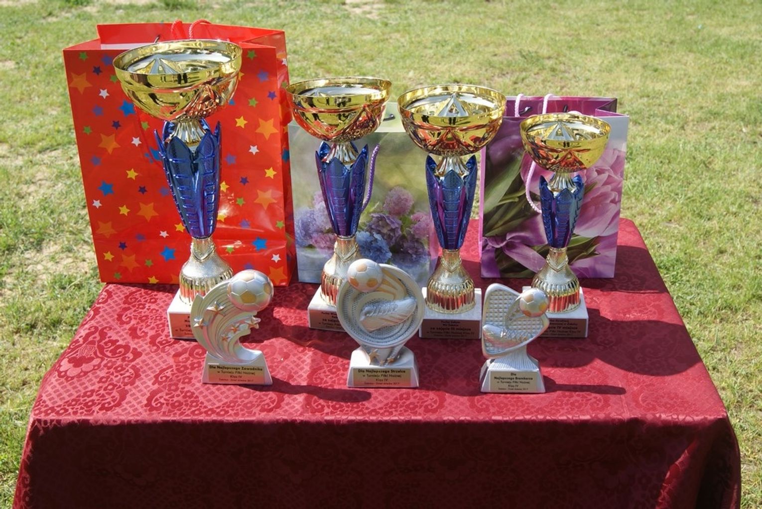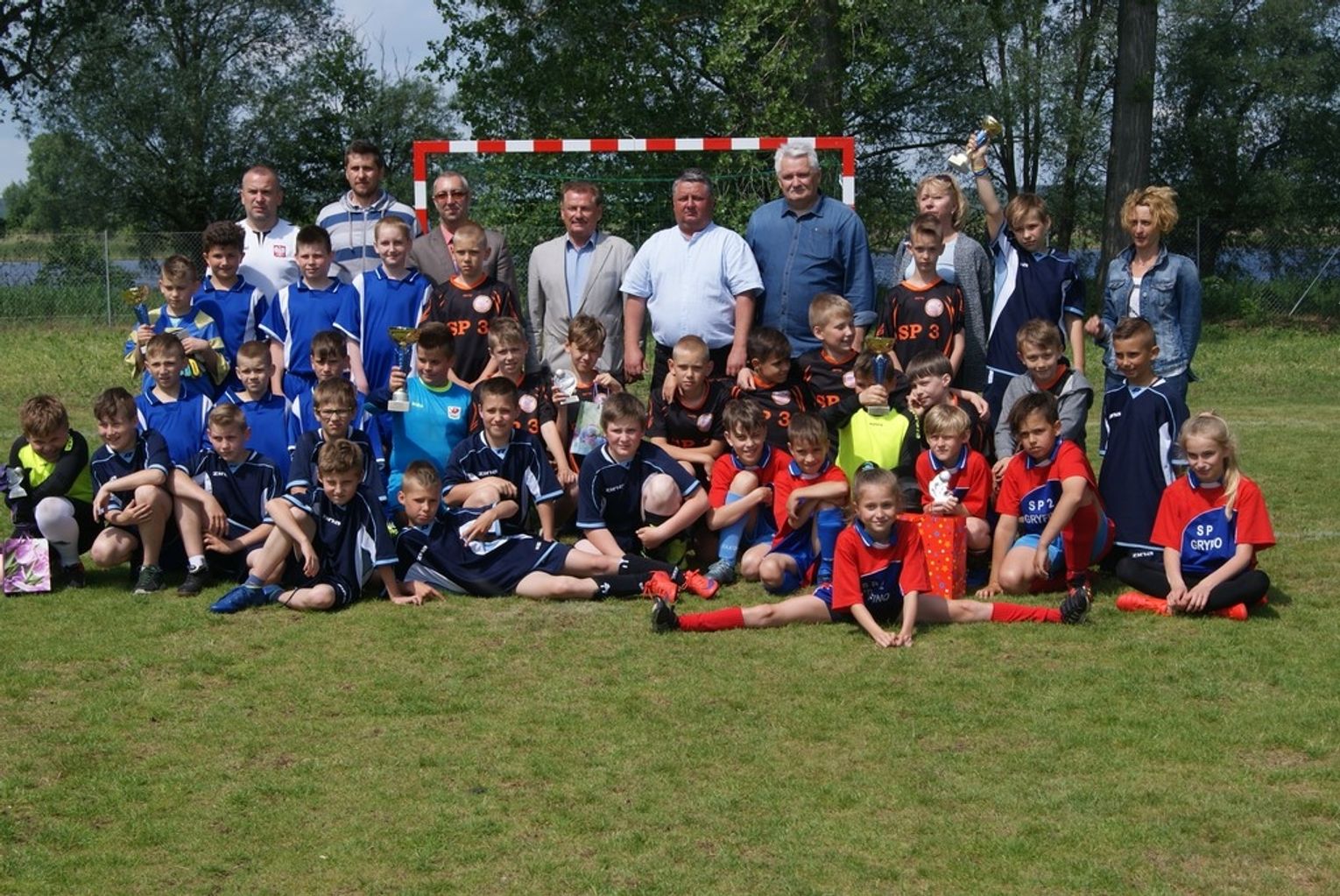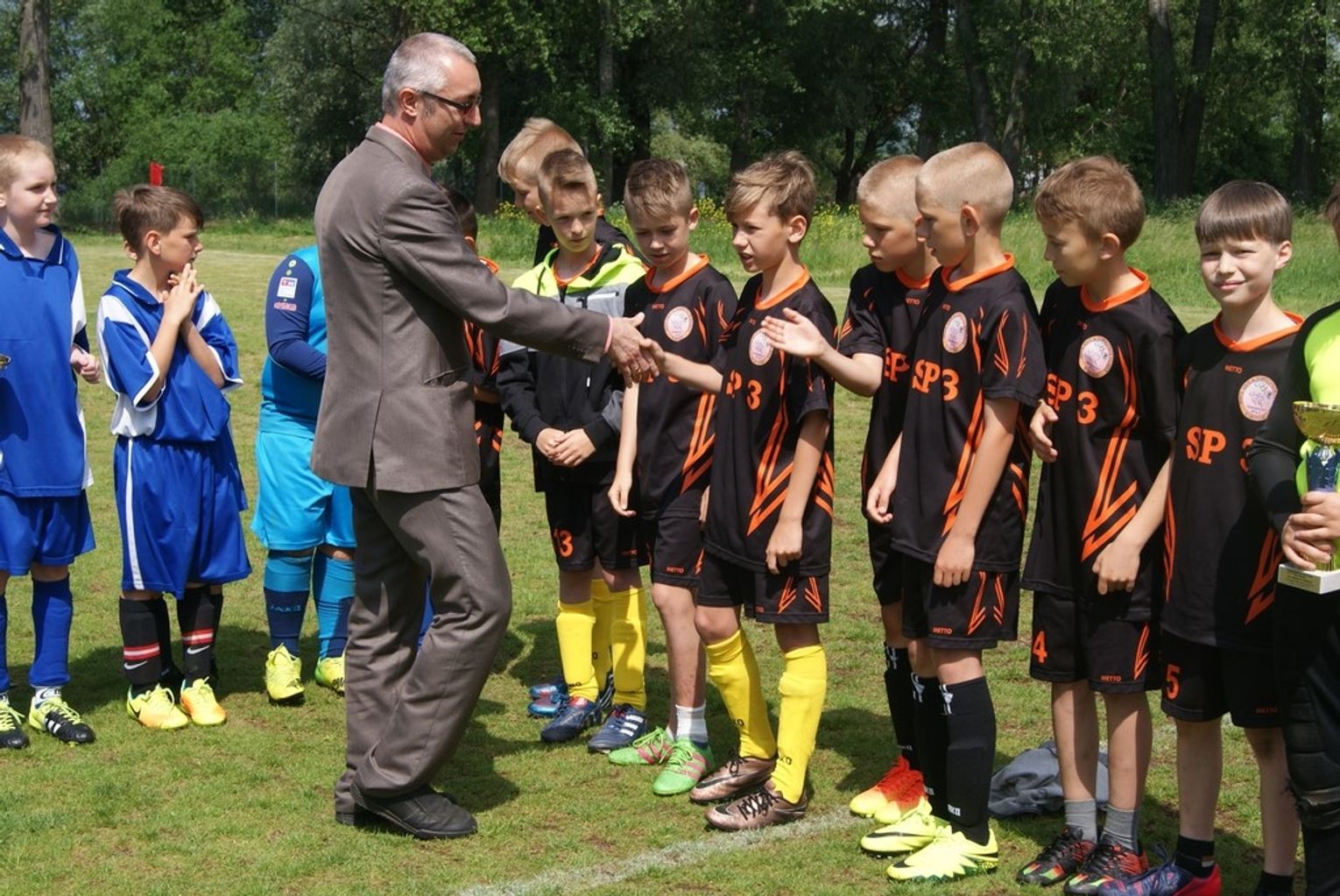 Puchary dla uczestników wręczyli wiceprzewodniczący Rady Miejskiej Zdzisław Kmieciak, naczelnik Wydziału Edukacji i Spraw Społecznych Grzegorz Jastrowicz, sołtys wsi Żabnica Jerzy Piasecki oraz dyrektor Szkoły Podstawowej w Żabnicy Sławomir Fuks.