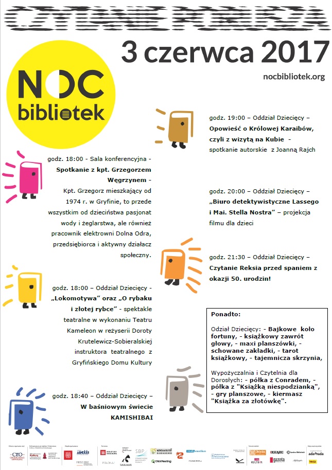 - godz. 18:00 – Oddział Dziecięcy - „Lokomotywa” oraz „O rybaku i złotej rybce” - spektakle teatralne w wykonaniu Teatru Kameleon w reżyserii Doroty Krutelewicz-Sobieralskiej, instruktora teatralnego z Gryfińskiego Domu Kultury