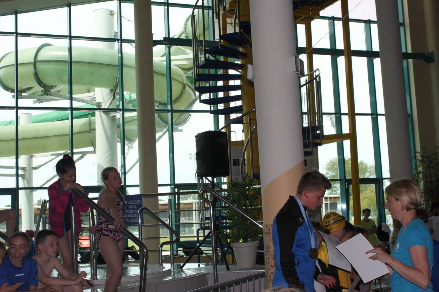 Starsza sztafeta w składzie: Mateusz Rozmiarek, Jagoda Kujawa, Celestyna Szulc i Jakub Szymański dopłynęła na 6 pozycji.