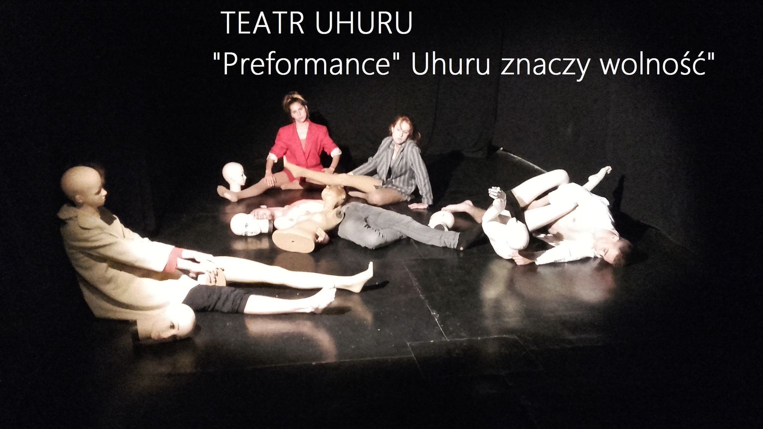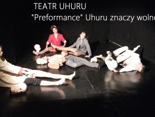 „Performance. Uhuru znaczy wolność” to impresja o ludziach na wpół sztucznych, ludziach-manekinach, zamkniętych w wąskim i ograniczonym świecie, pragnących czegoś więcej, a przede wszystkim tęskniących za uwolnieniem, za prawdziwością i pięknem – może też za prawdziwą wolnością. Otwierają drzwi teatru, opuszczają miejsce gry, pozorów, sztuczności i udawania, uciekają w otwartą przestrzeń jak zwierzęta wypuszczone nagle z klatki, jak więźniowie po latach niewoli spragnieni powietrza, przestrzeni, życia …