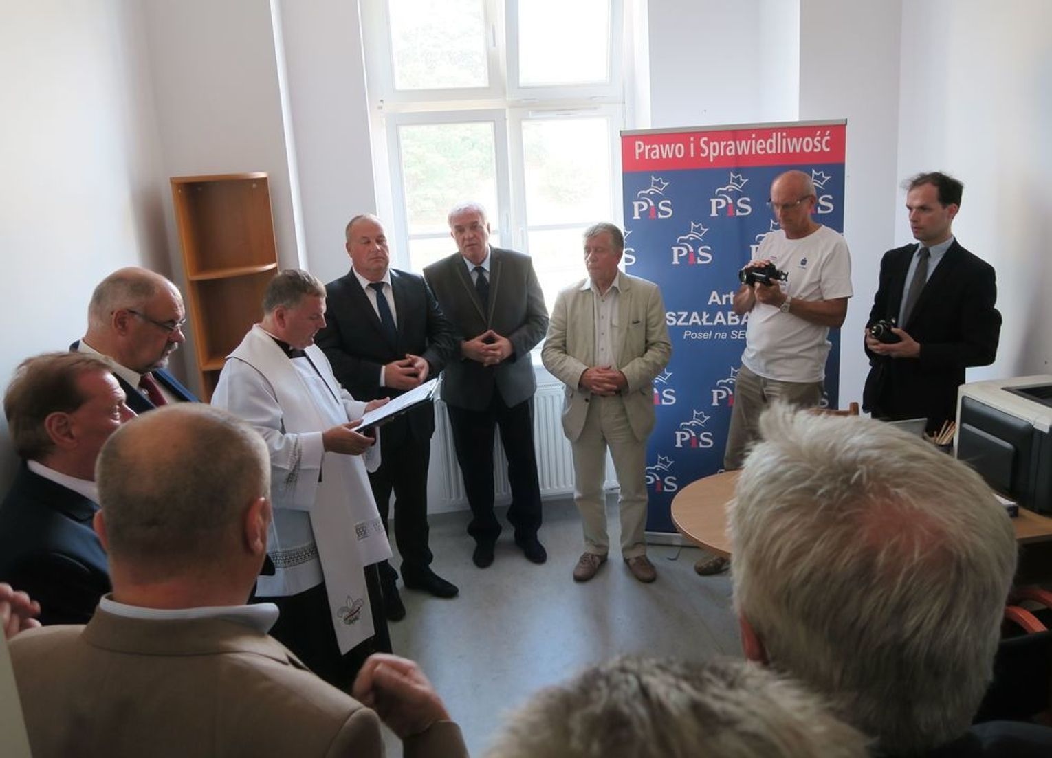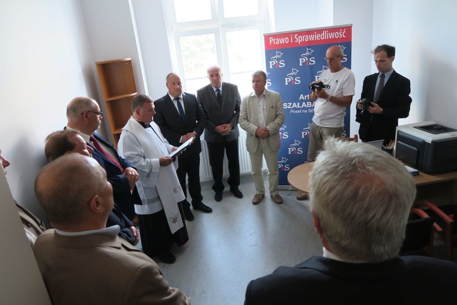 Biuro poselskie, które znajduje się na pierwszym piętrze w budynku dworca PKP poświęcił ksiądz proboszcz ( z Żabnicy) kanonik Jerzy Brocławik.