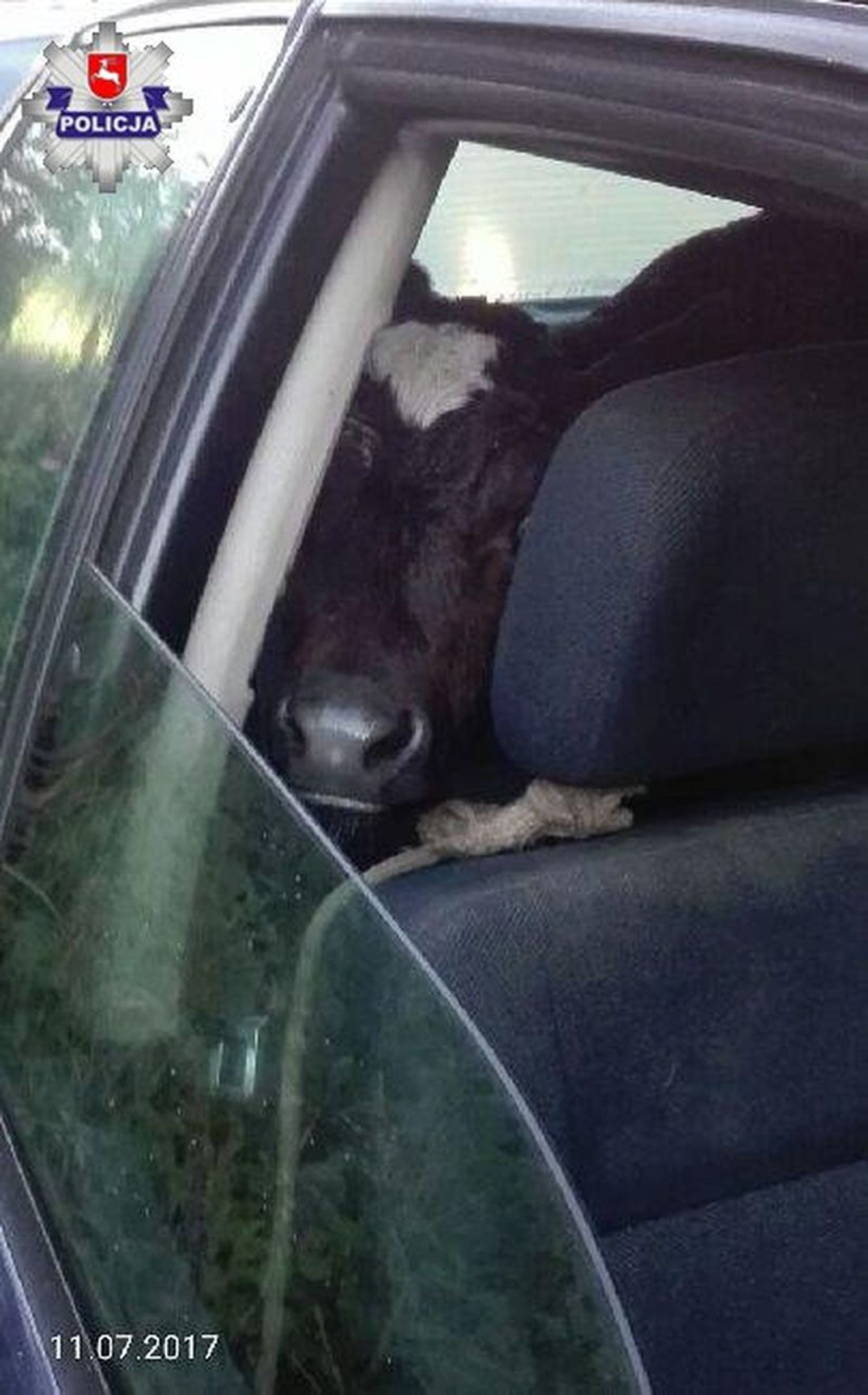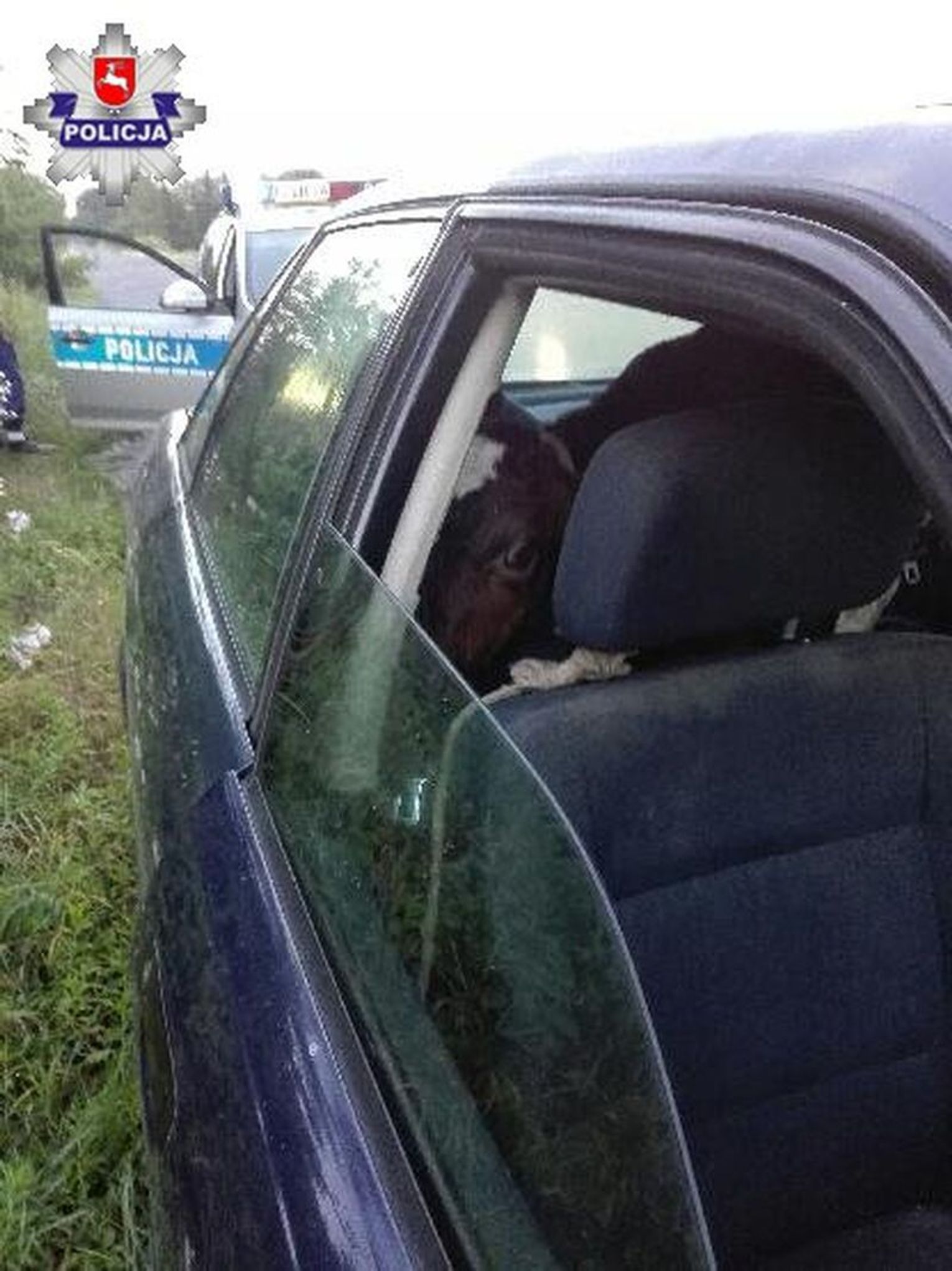 Kierowca, 50-latek z gm. Urszulin, w dalszą podróż do domu ze zwierzęciem musiał udać się już pieszo, bo policjanci zabronili mu dalszej jazdy, a za nieodpowiedni przewóz zwierzęcia ukarali mandatem karnym.