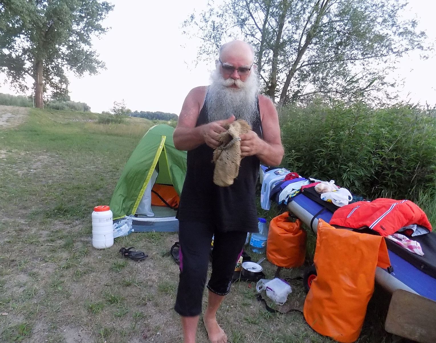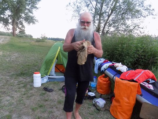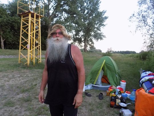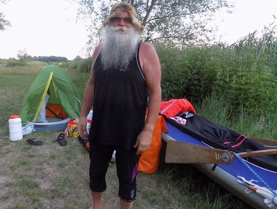- Wcześniej podczas urlopu próbowałem pływać. Kupiłem starą żaglówkę, którą wyremontowałem i mimo że nie miałem wielkiego pojęcia o morskich rejsach po morzach, wybrałem się na Bermudy. Łatwo nie było, ale przez Trójkąt Bermudzki przepłynąłem. Marzył mi się Ocean Atlantycki, ale na całe szczęście spotkałem amerykańskiego żeglarza, który wybił mi z głowy wypłynięcie tam moim jachtem żaglowym i zaproponował wspólną wyprawę. Nie trzeba było mi dwa razy powtarzać. Pewnego razu płynąc wodami oceanu zauważyliśmy pływające na powierzchni przedmioty. Wśród nich był również ten kapelusz. Wyłowiłem go i tak towarzyszy mi on w moich pływających wędrówkach już parę lat. Teraz wypłynąłem z Wrocławia i mam zamiar dotrzeć do Gdańska. Płynę już dziesięć dni. Na nocleg zatrzymuję się w różnych miejscowościach. Dziś miałem jeszcze popłynąć dalej, ale dowiedziałem się o waszych gryfińskich sobótkach i z ciekawości zostałem - opowiada Stanisław Rutkowski.