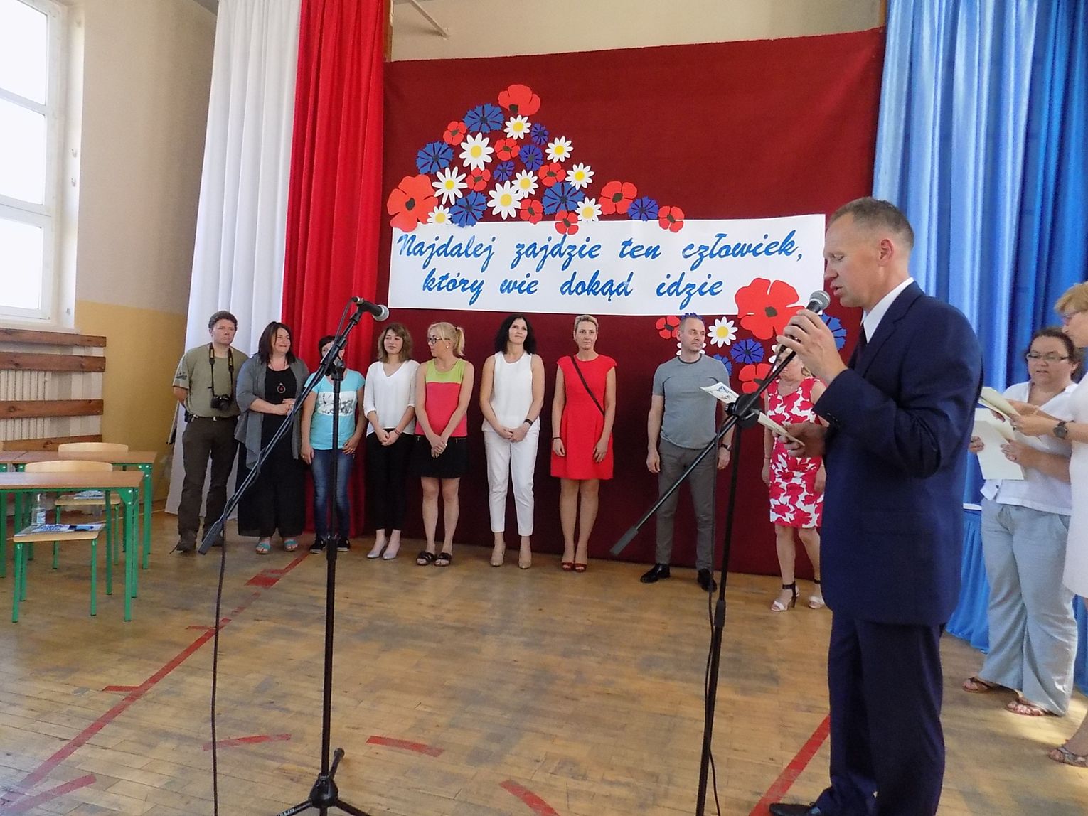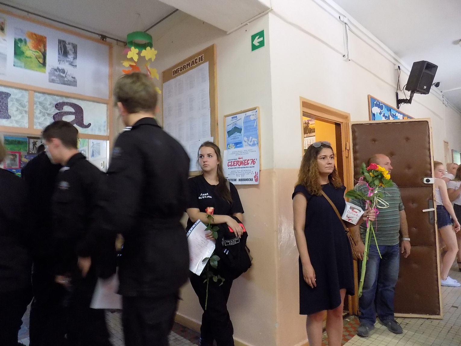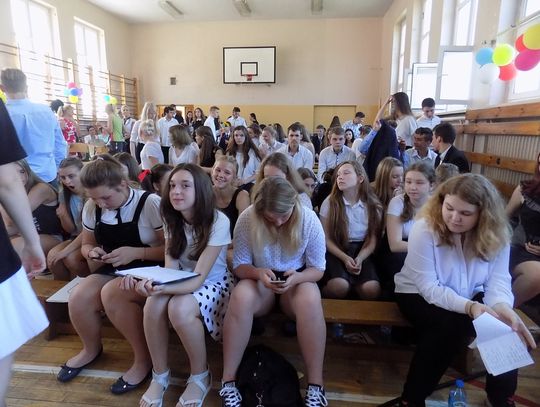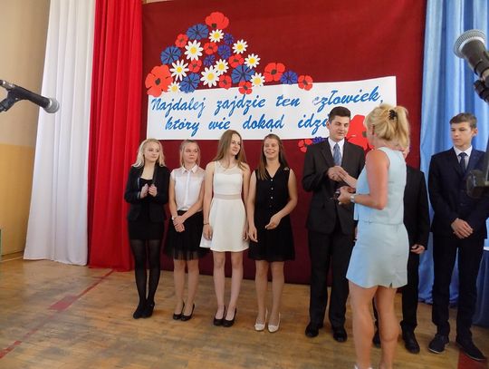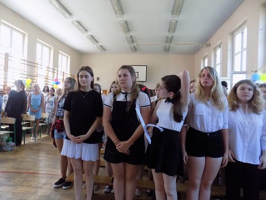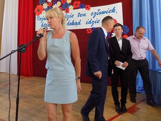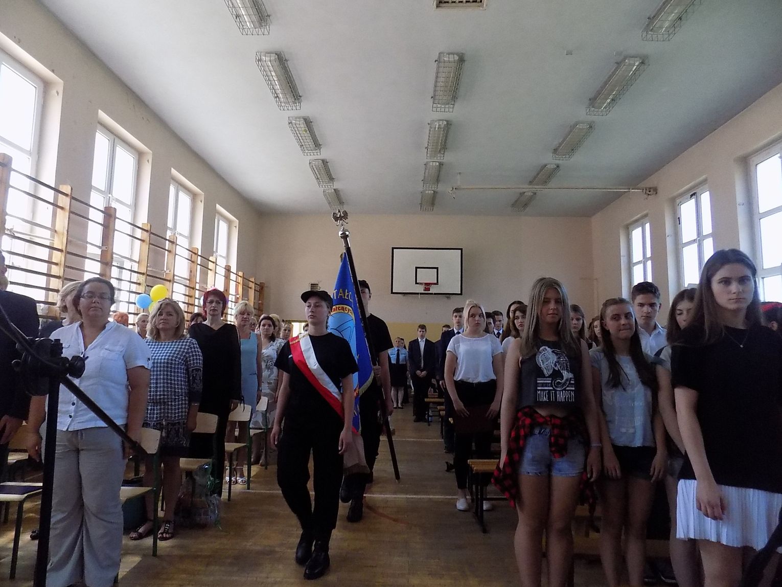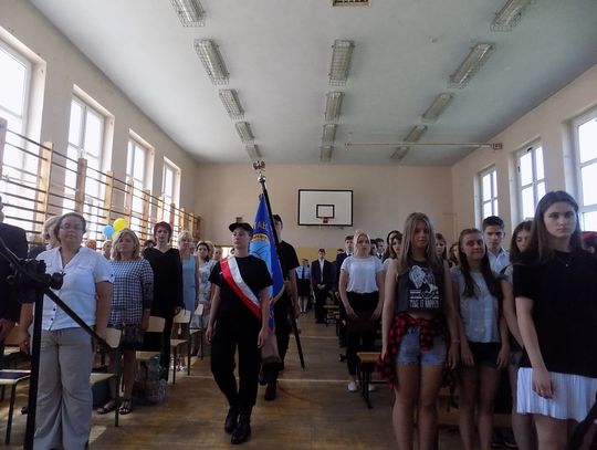 Sztandar szkoły, hymn. Jeszcze tylko życzenia wspaniałych wakacji, odebranie świadectw i gratulacje oraz nagrody dla wyróżniających się uczniów. I wakacje!