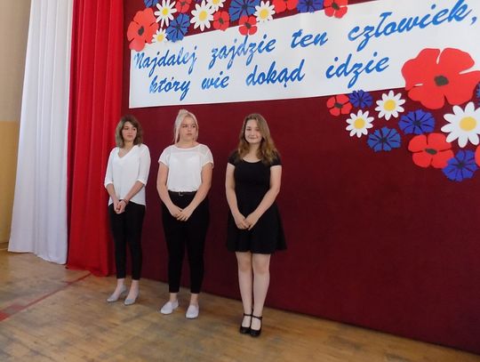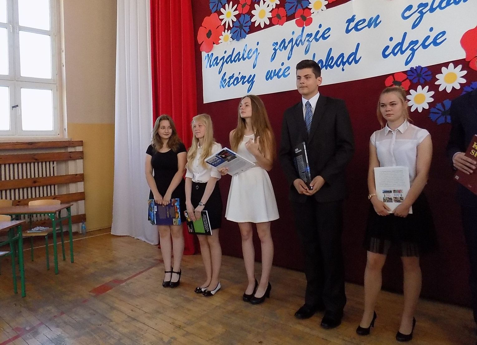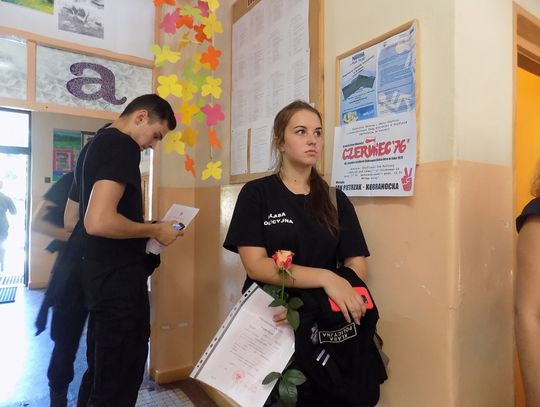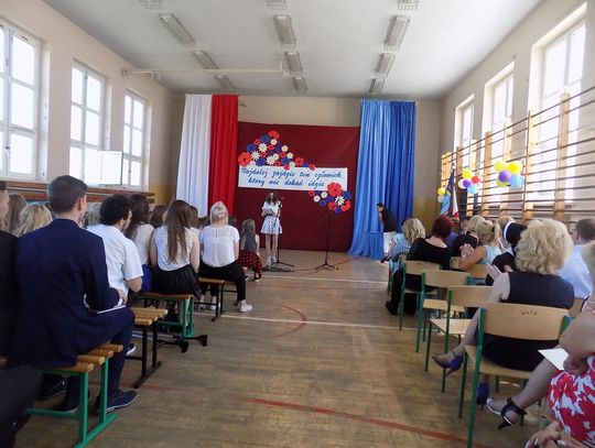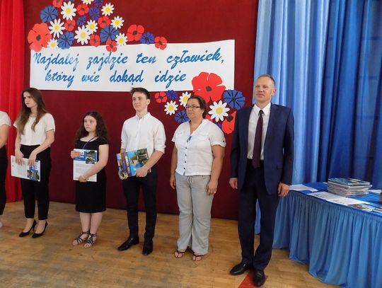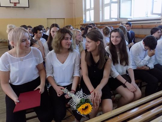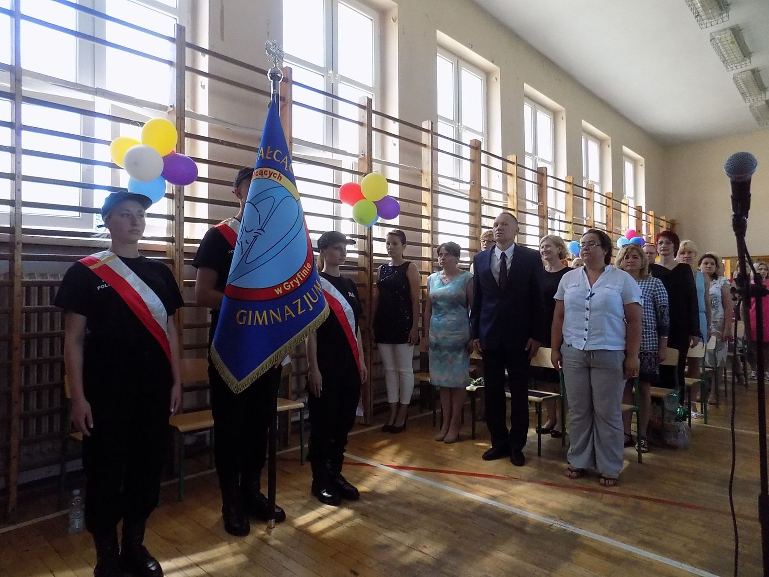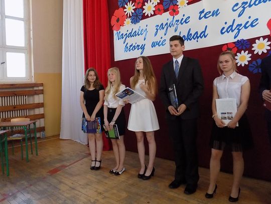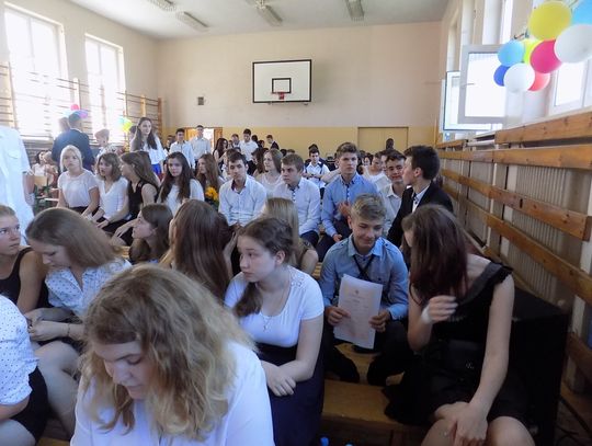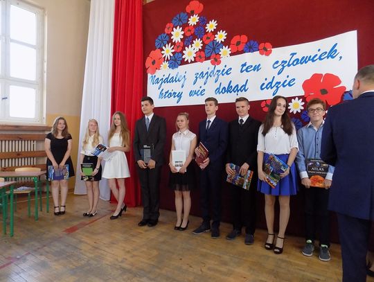 Sztandar szkoły, hymn. Jeszcze tylko życzenia wspaniałych wakacji, odebranie świadectw i gratulacje oraz nagrody dla wyróżniających się uczniów. I wakacje!