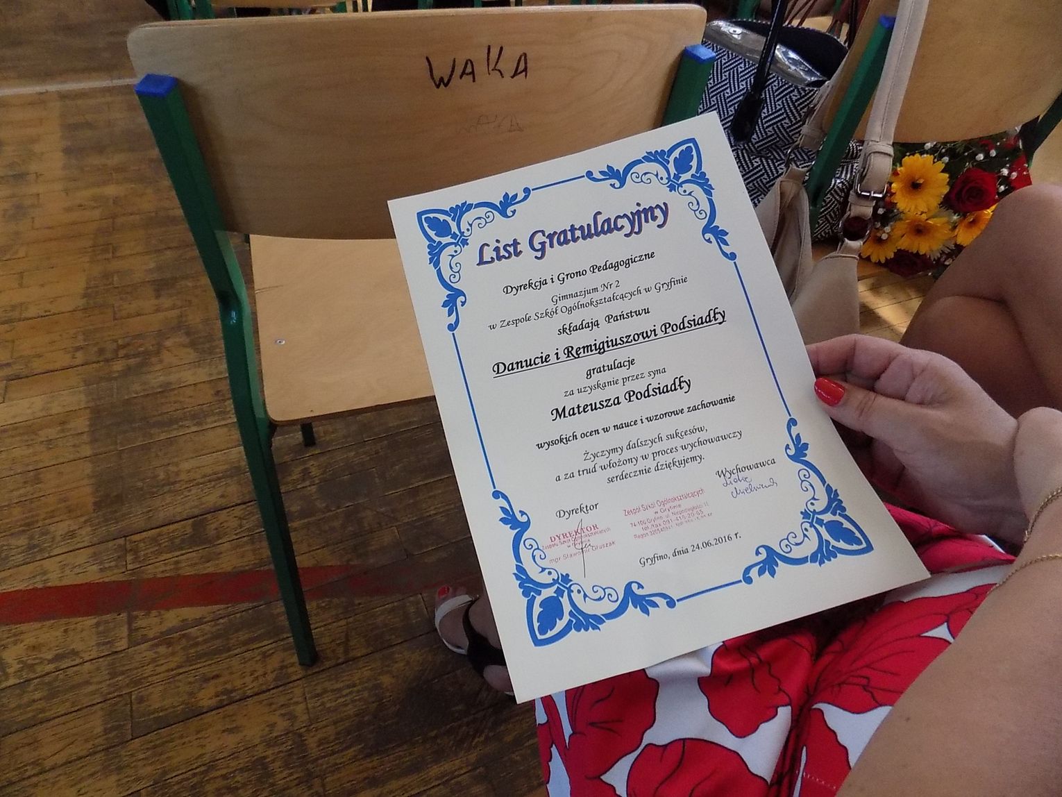 Słowa podziękowania dyrektor skierował również do grona nauczycielskiego, dziękując za wysiłek, bez którego żadnych osiągnięć by nie było. Listy gratulacyjne otrzymali rodzice wyróżniających się uczniów. Dyrektor nie zapomniał również o pracownikach obsługi i administracji, doceniając ich wkład w życiu szkoły.