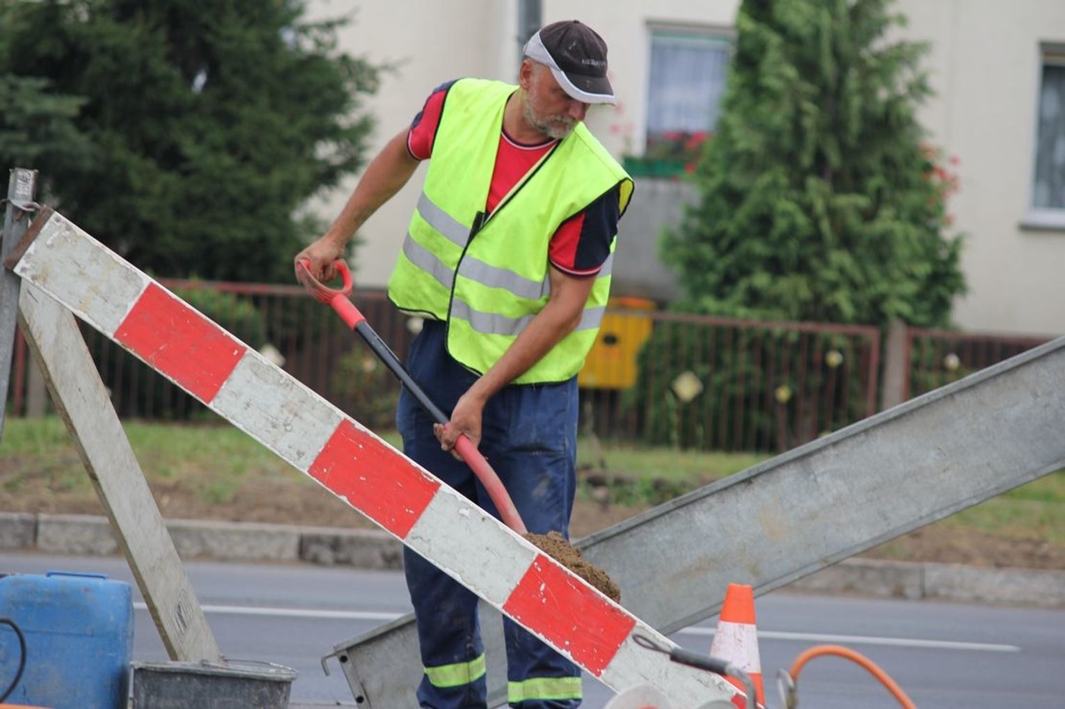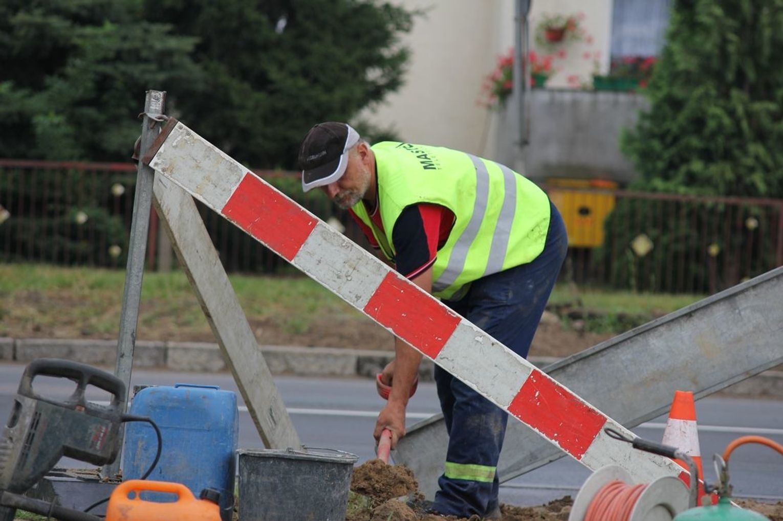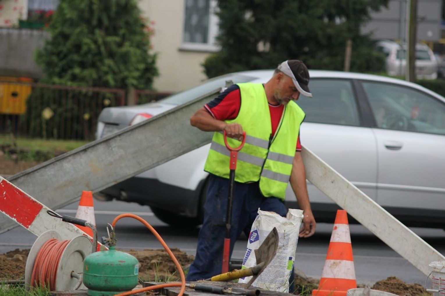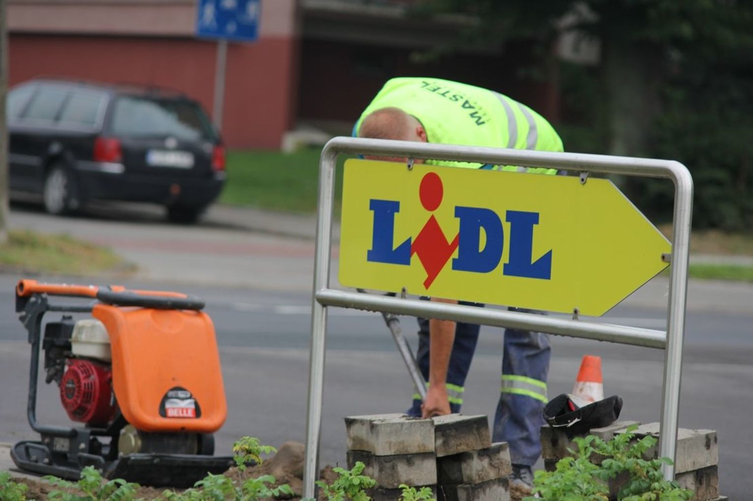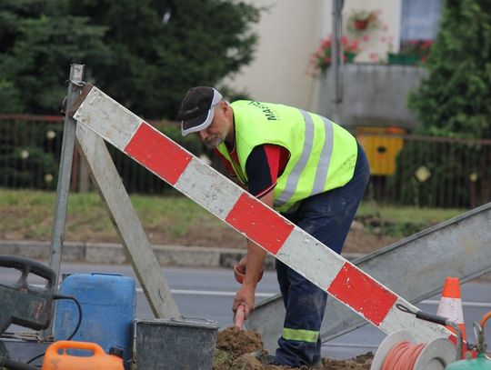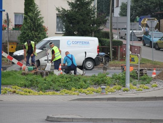 Usługę niedaleko wjazdu na parking Lidla wykonuje grupa pracowników z firmy MASTEL. Telekomunikacja. Monitoring z Sępólna Krajeńskiego.