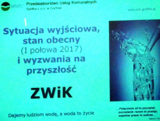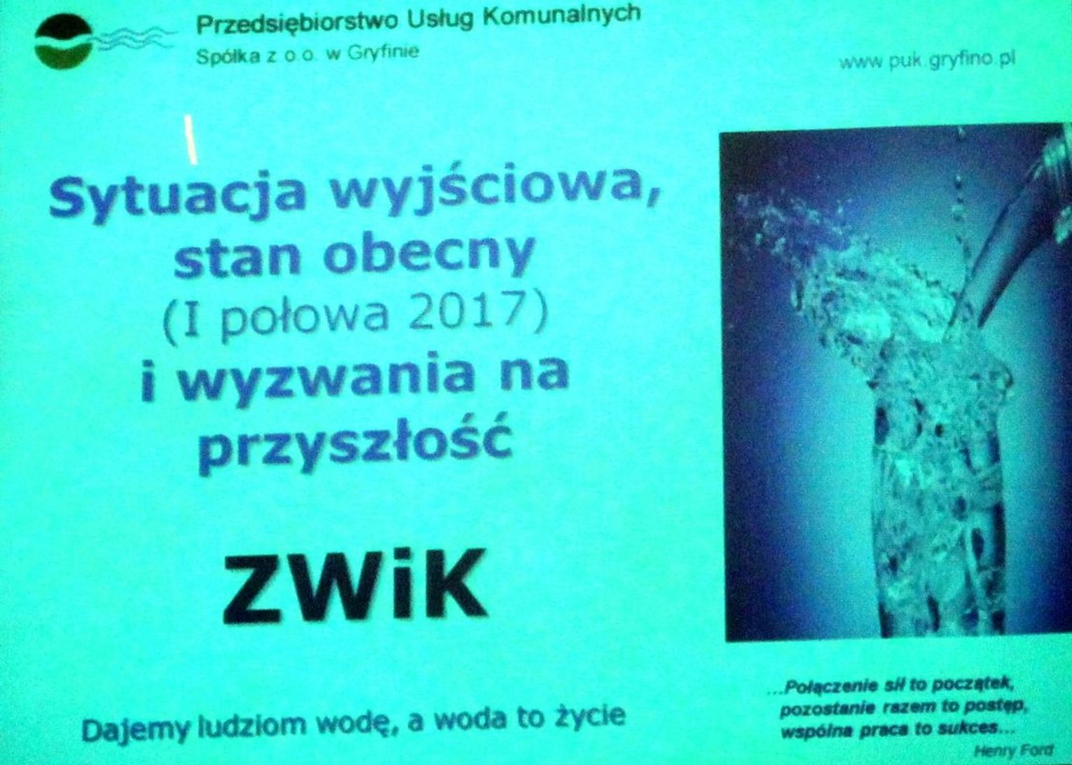 Ponieważ Przedsiębiorstwo Usług Komunalnych w Gryfinie jest jedną z niewielu spółek, które mają bardzo szeroki zakres działania, czyli praktycznie rzecz biorąc od dostarczenia wody, kończąc na pochówkach. Myśmy niestety zmuszeni byli mając na względzie państwa zdrowie, nasze zdrowie na dzisiaj zdecydować się na przedstawienie państwu ZWiK-u, czyli Zakładu Wodociągów i Kanalizacji. W ciągu krótkiego czasu, myślę, że po wakacjach przedstawimy równie dokładny opis wszystkich pozostałych działalności. To nie znaczy, że my te działalności traktujemy w jakikolwiek sposób źle, ponieważ dzisiaj jest ogromy hejt na spółkę ze względu na podwyżkę taryf dlatego uważam, że to jest dobry wybór. Myślę również, że po tym naszym spotkaniu będziemy znowu normalną społecznością i będziemy mogli dla państwa pracować. Ja nie wiem, bo moja kadencja kończy się dzisiaj, jak będę dalej, to będę dalej próbował pracować, jak nie będę, to trudno, takie życie.
