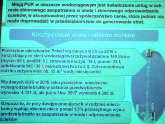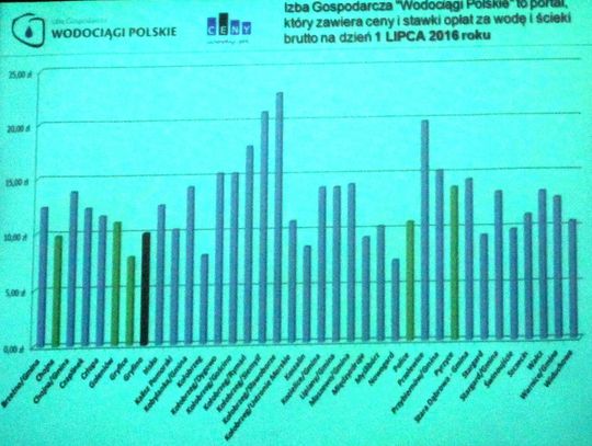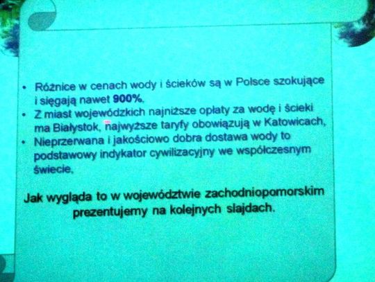 My jesteśmy jednym z niewielu przedsiębiorstw w województwie zachodniopomorskim, dokładnie jednym z trzech albo czterech w którym taryfę zmienia się w środku roku, czyli taryfa obowiązuje od 1 lipca do 30 czerwca, nie jak w większości przypadków od 1 stycznia do 31 grudnia. To powoduje pewne problemy z porównaniem, jest problem z obiektywnym porównaniem. Jak wygląda to dzisiaj w Polsce - różnice są straszne, dochodzą nawet do 900 procent, czyli dziewięciokrotne różnice w minimalnych i maksymalnych stawkach rozumianych jako suma taryf za dostarczanie wody i odprowadzenie ścieków. Z miast wojewódzkich, bo do tych mamy łatwy dostęp – Białystok ma najniższe, Katowice mają najwyższe. Państwo oczywiście mogą bez problemu sięgnąć do dowolnych danych, bo są to dane z internetu. Jest Izba Gospodarcza „Wodociągi Polskie”. Po słynnej kradzieży 3 mln zł nikt nie chciał PUK-u w tej izbie i PUK przez wiele lat nie był członkiem zachodniopomorskiej izby. Od dwóch lat, czy półtora roku jesteśmy z powrotem jej członkiem, czyli PUK jest już pełnoprawnym członkiem Izby Gospodarczej.