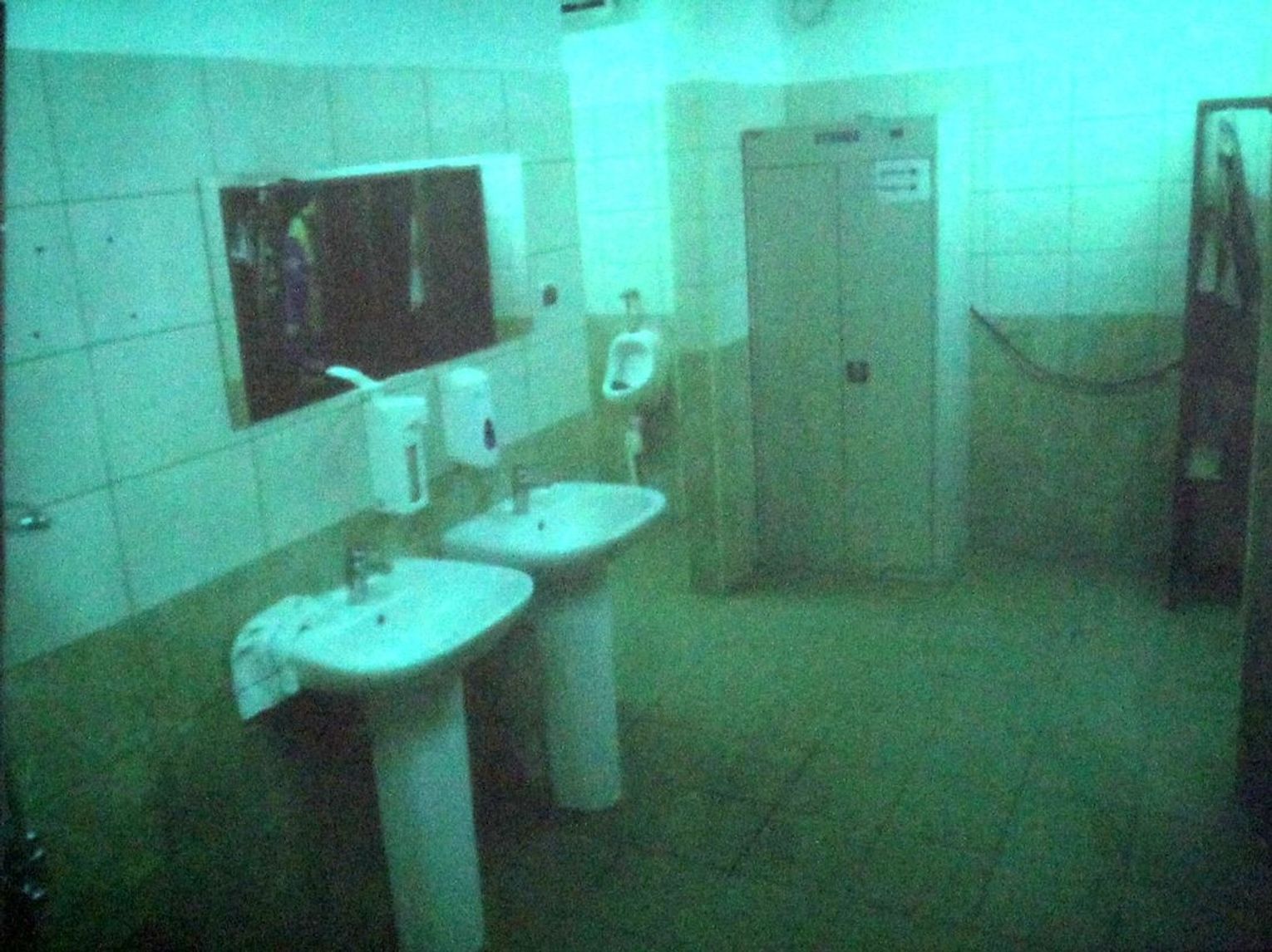 Tak wyglądała szatnia i łaźnia dla załogi, dla ludzi, którzy pracują w wodociągach na dole, w kanalizacji. Tak to wyglądało, a tak to wygląda teraz. Niektórzy nasi pracownicy mówią, że w domu maja trochę gorzej, tylko proszę pamiętać o tym, że w tych łazienkach i w tych łaźniach są lampy bakteriobójcze i że ci ludzie pracują w potwornie strasznym środowisku więc musimy dbać, proszę zobaczyć tu są wszędzie pojemniki z substancjami bakteriobójczymi. To nas kosztowało trochę pieniędzy, ale na tym nie można było oszczędzać. To jest druga rzecz na którą niestety muszę zwrócić uwagę, która być może zostanie przez państwa odebrana może dziwnie, ale ja muszę to powiedzieć, ponieważ to jest święta prawda.