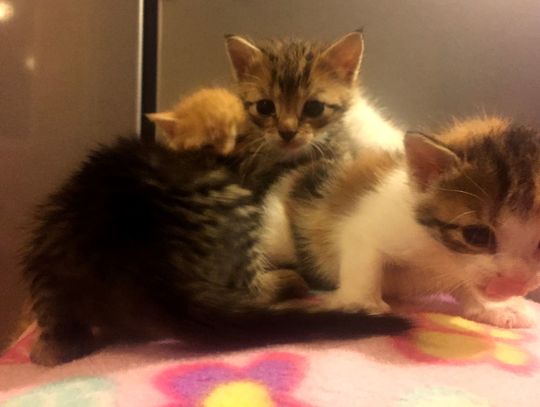 Bardzo dziękujemy pani, która uratowała kociaki. Natomiast Państwa prosimy o pomoc w znalezieniu domów dla kocich dzieci. Są śliczne. A kot w domu to, proszę Państwa, samo ciepło, mruczenie i przymilność. R.A. Heilein powiedział: „To jak traktujesz koty, decyduje o twoim miejscu w niebie”.