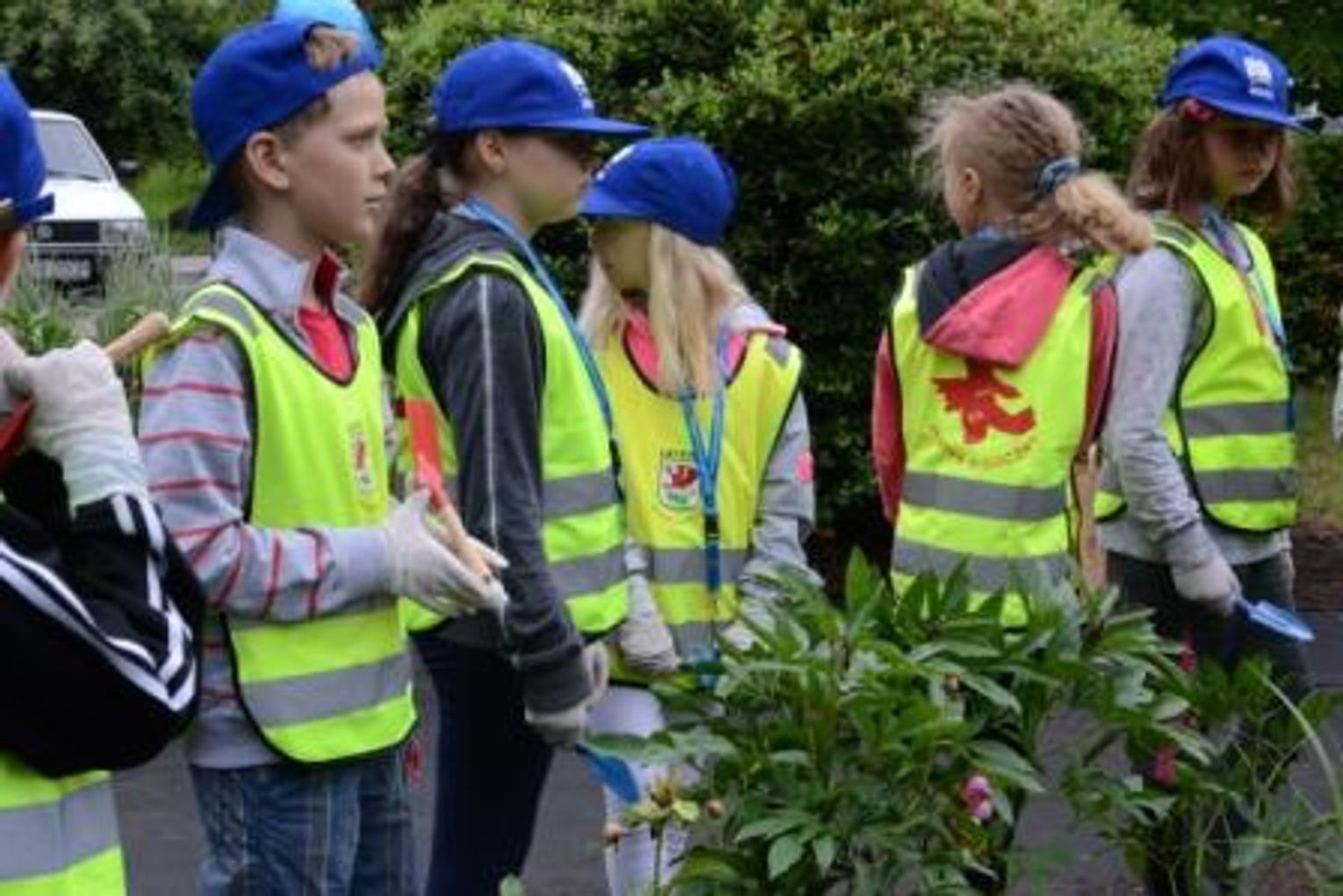 Akcja sadzenia kwiatów przez dzieci została zorganizowana przy współpracy SP nr 2 z Urzędu Miasta i Gminy w Gryfinie oraz PSB Mrówka Gryfino.