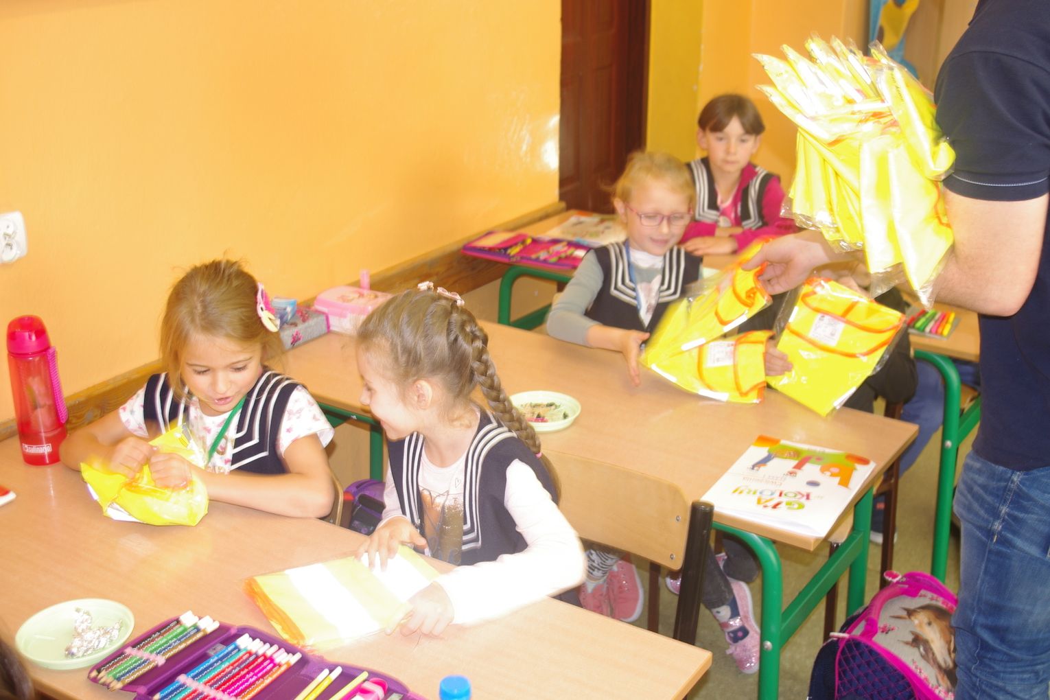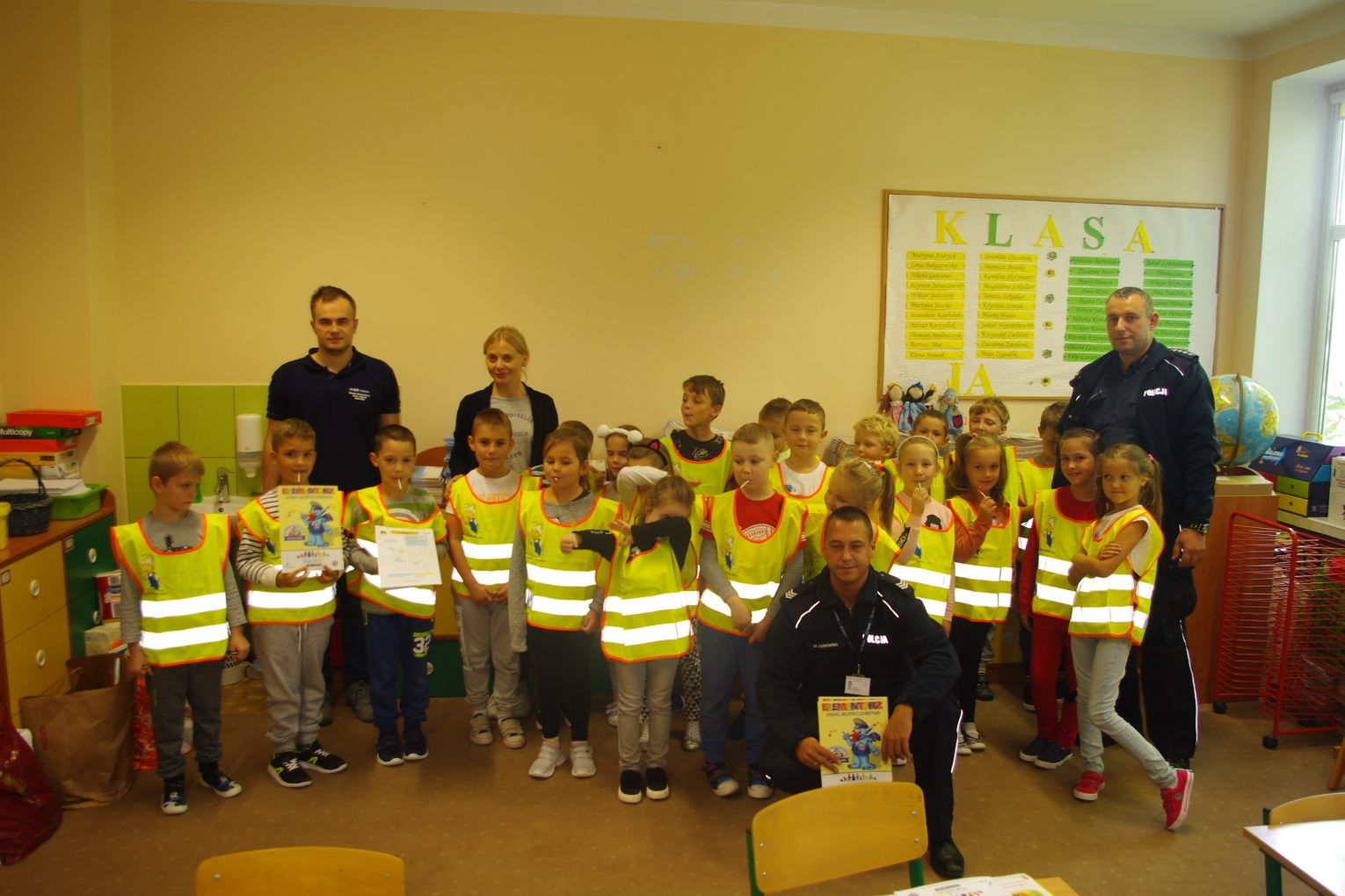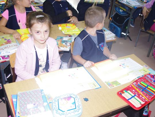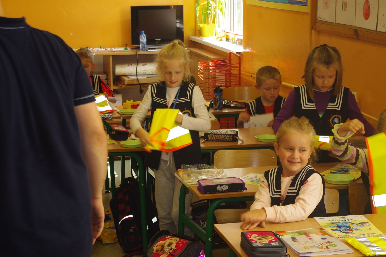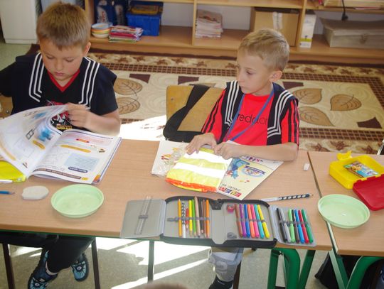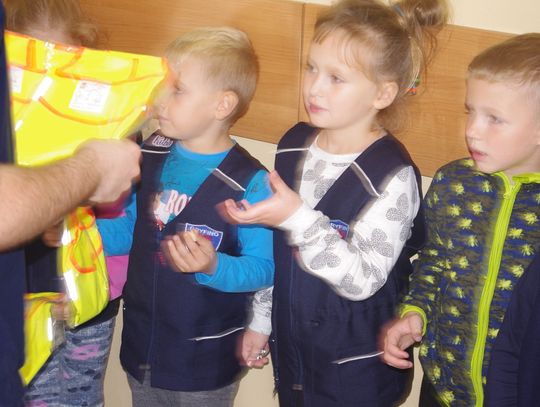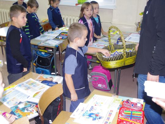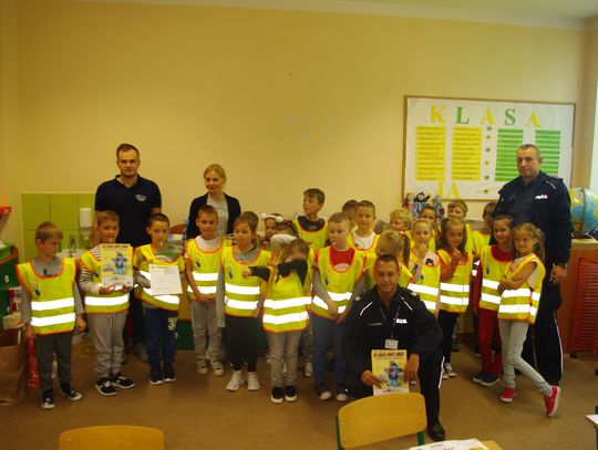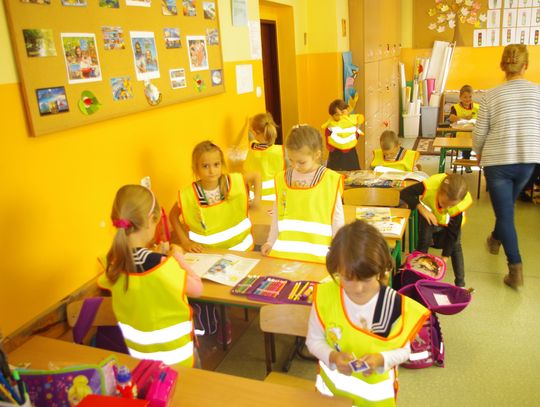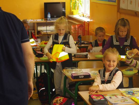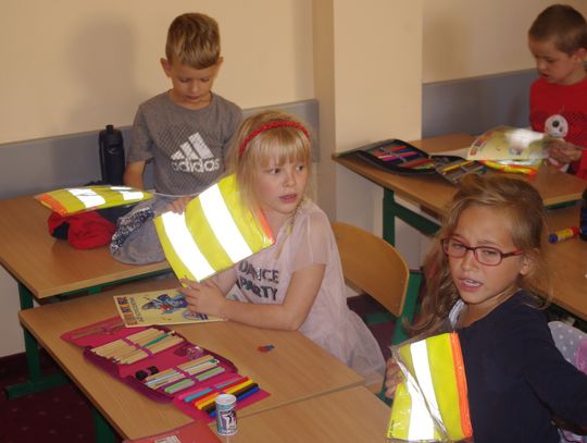 Dzięki wsparciu i zaangażowaniu jednego z lokalnych przedsiębiorców w tym roku każdy uczeń otrzymał również kamizelkę odblaskową, dzięki której będzie bardziej widoczny w drodze do szkoły i nie tylko, szczególnie podczas zbliżającego się okresu jesienno – zimowego, kiedy wcześniej zapada zmrok.