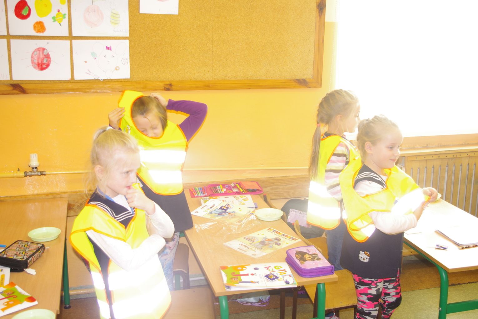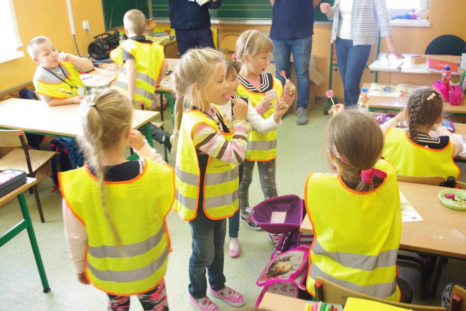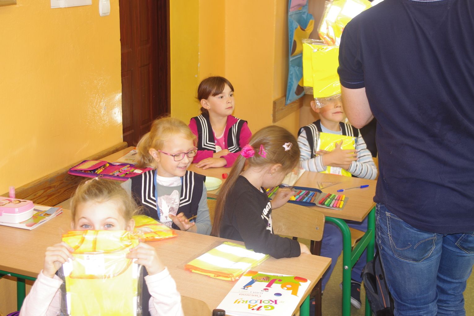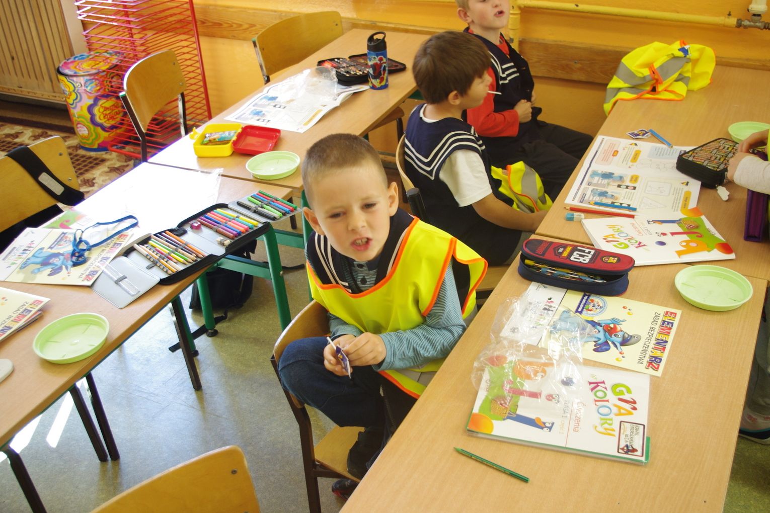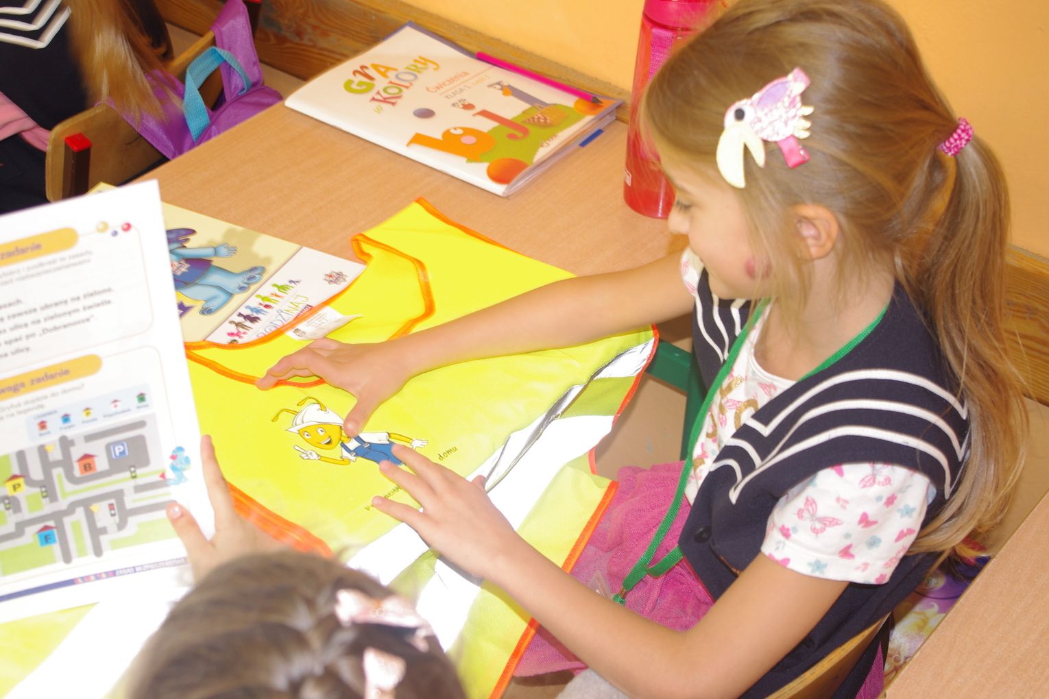 Dzięki wsparciu i zaangażowaniu jednego z lokalnych przedsiębiorców w tym roku każdy uczeń otrzymał również kamizelkę odblaskową, dzięki której będzie bardziej widoczny w drodze do szkoły i nie tylko, szczególnie podczas zbliżającego się okresu jesienno – zimowego, kiedy wcześniej zapada zmrok.