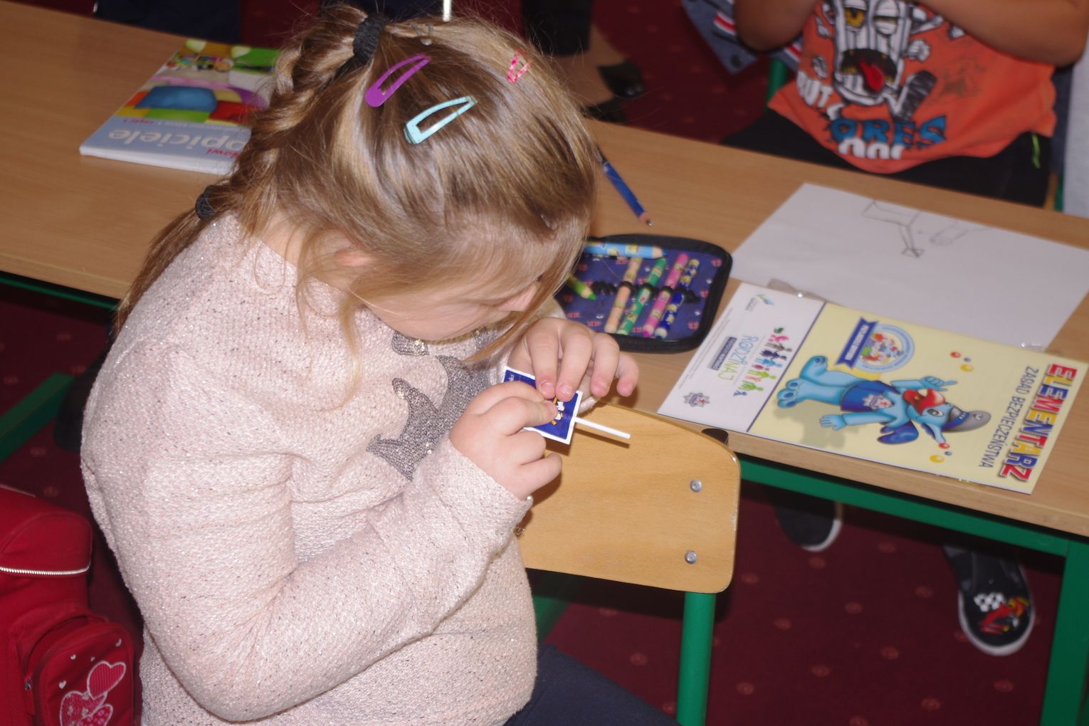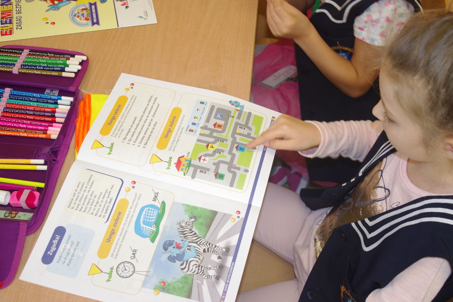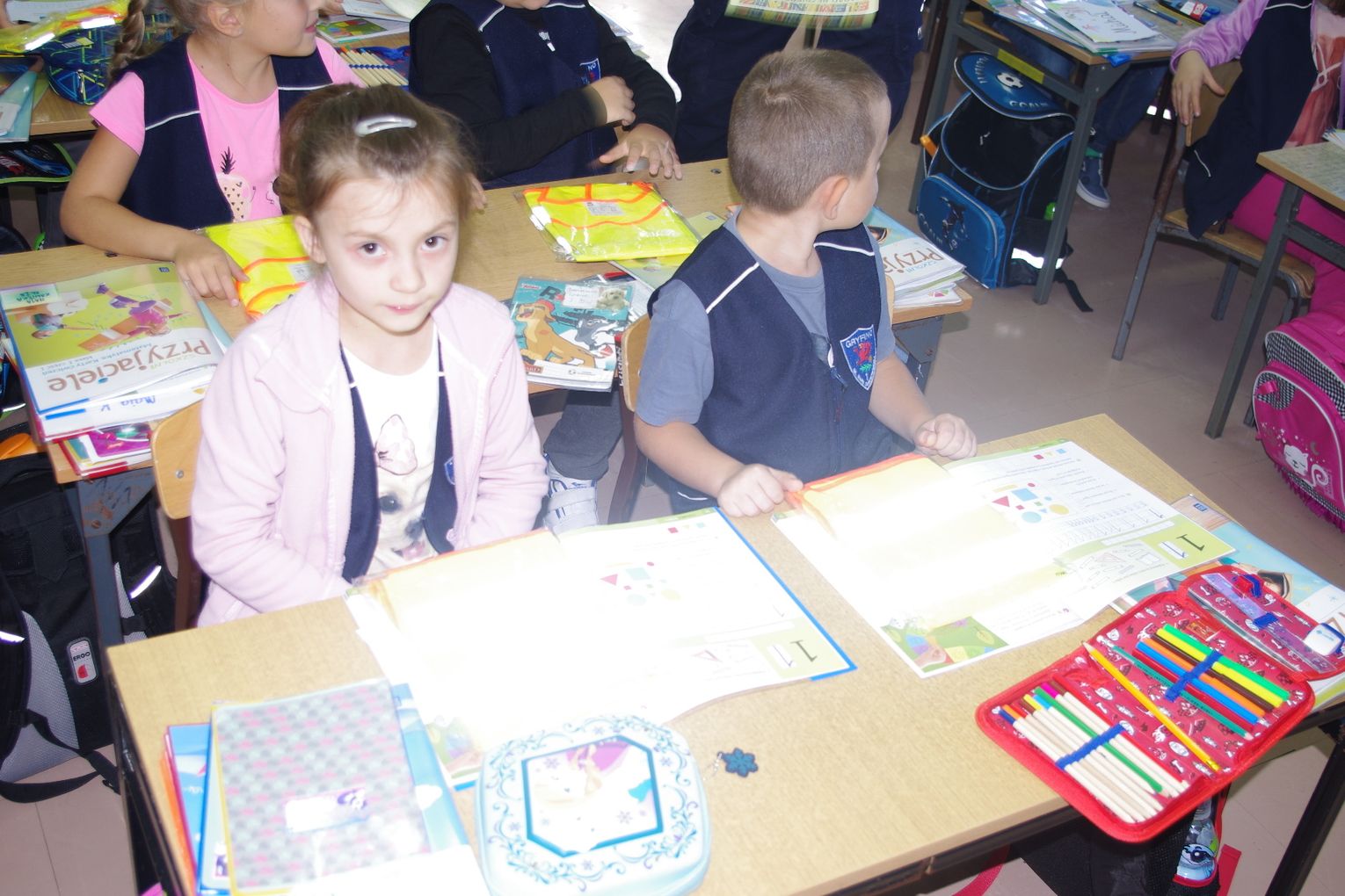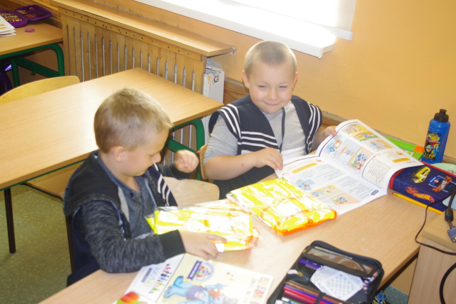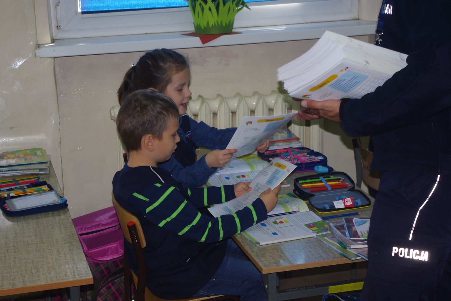 Dzięki wsparciu i zaangażowaniu jednego z lokalnych przedsiębiorców w tym roku każdy uczeń otrzymał również kamizelkę odblaskową, dzięki której będzie bardziej widoczny w drodze do szkoły i nie tylko, szczególnie podczas zbliżającego się okresu jesienno – zimowego, kiedy wcześniej zapada zmrok.