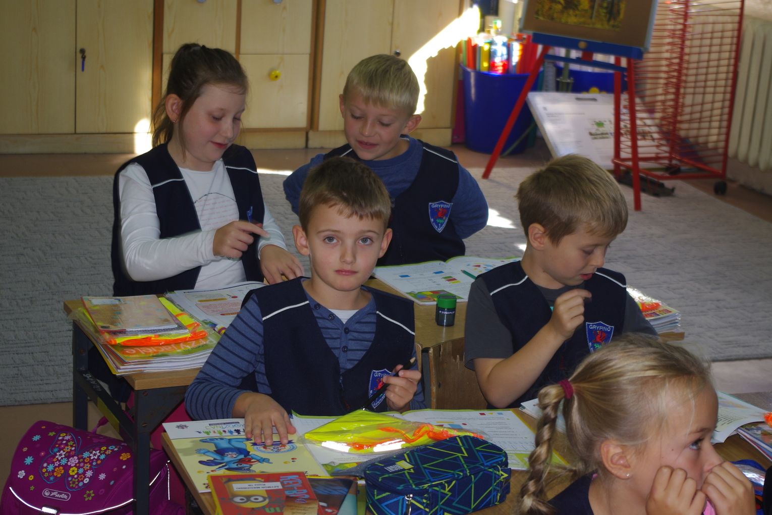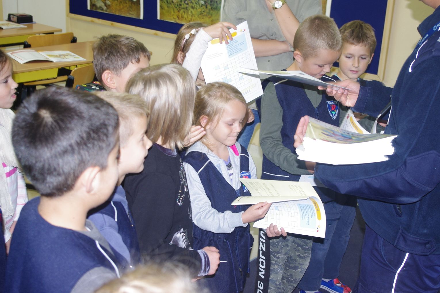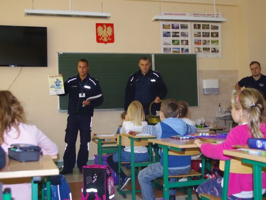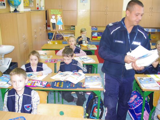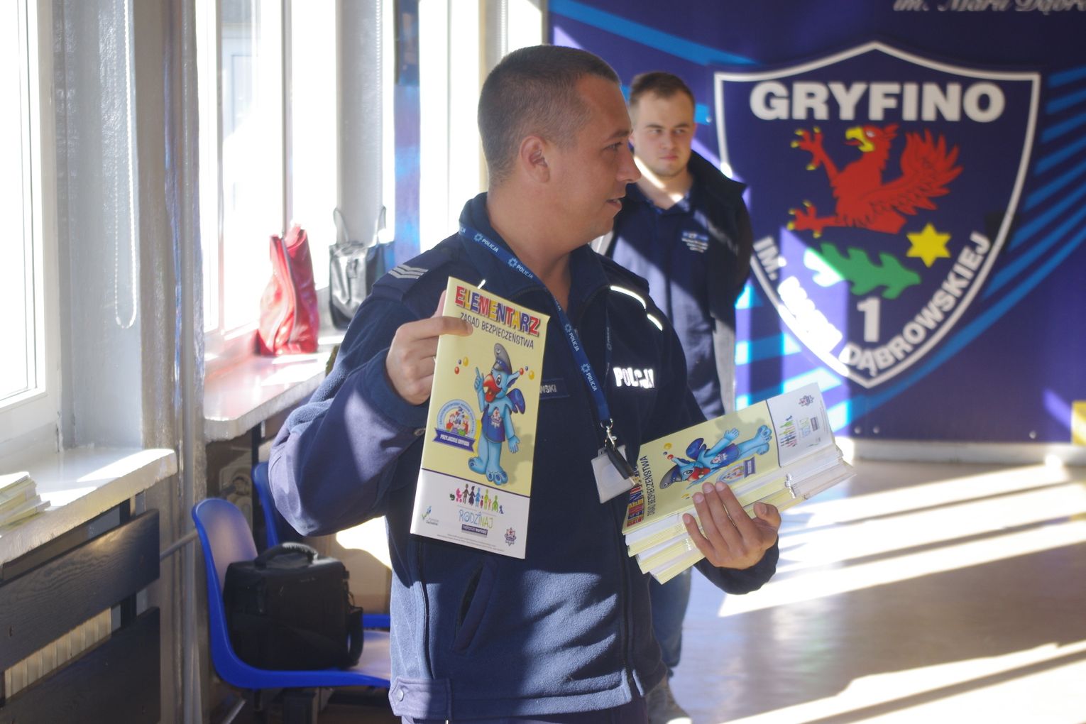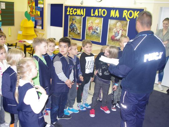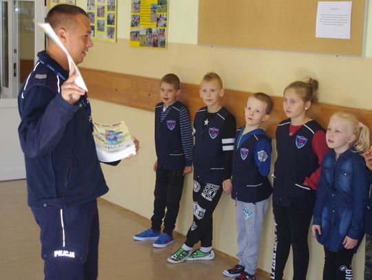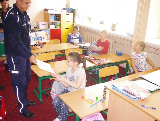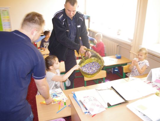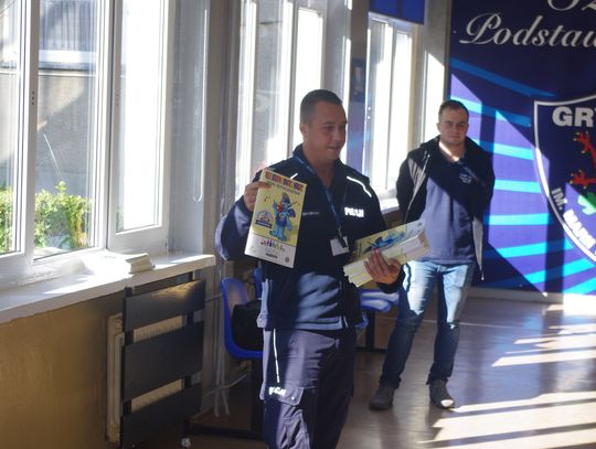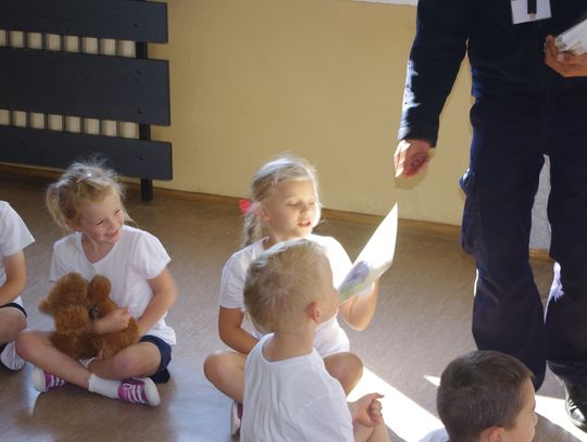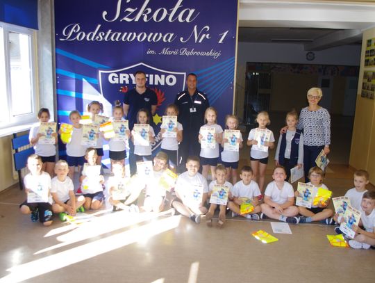W ramach projektu ”Gryfuś i przyjaciele” policjanci omówili m.in. tematy związane z bezpieczeństwem w ruchu drogowym, prawidłowym zachowaniem się w domu, w szkole, na podwórku.
