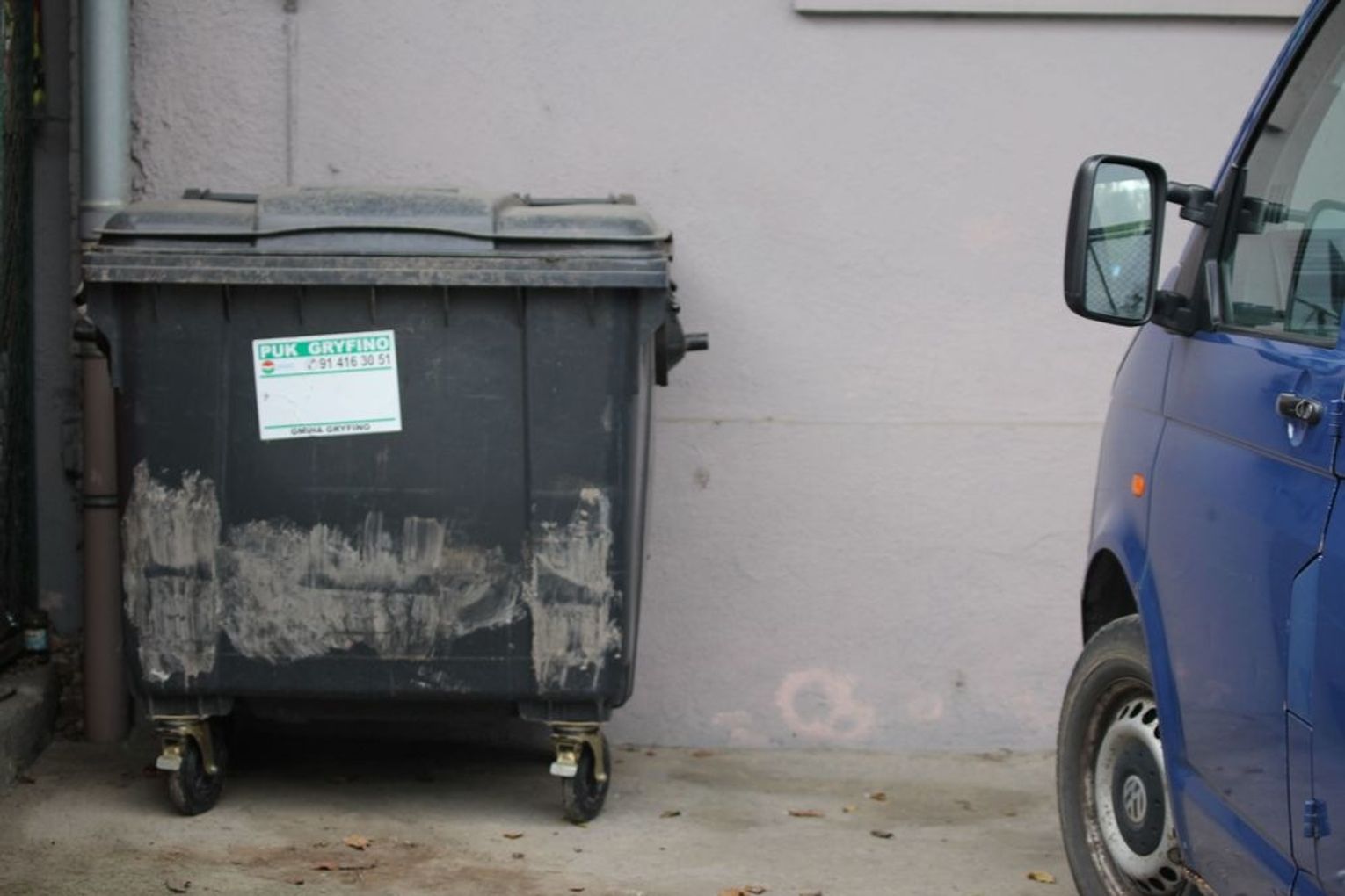 Przy ulicy Kolejowej w Gryfinie jest niejeden kontener na śmieci.